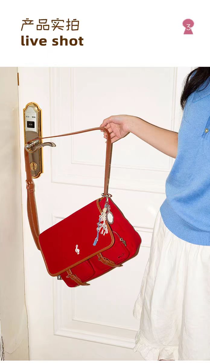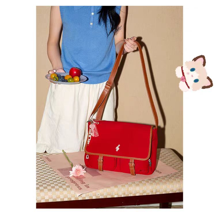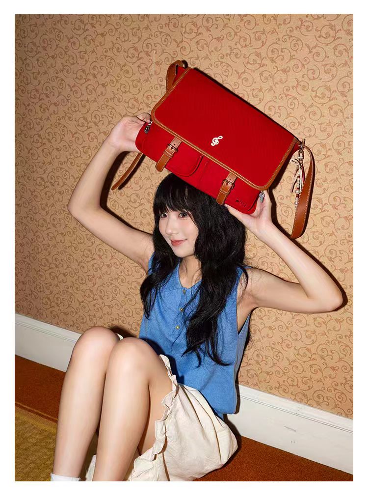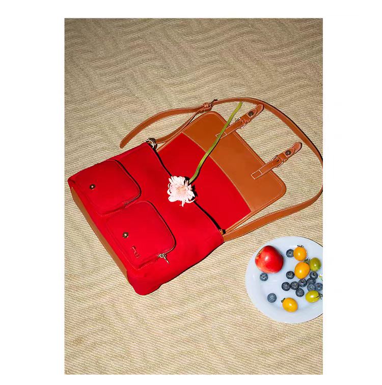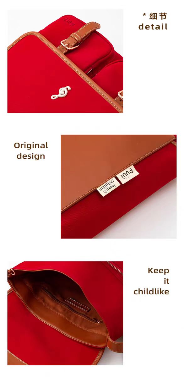 4楼Eubelle欧蓓 puui原创生活红色帆布大容量 公文包小众通勤斜挎电脑包 活动价:389元