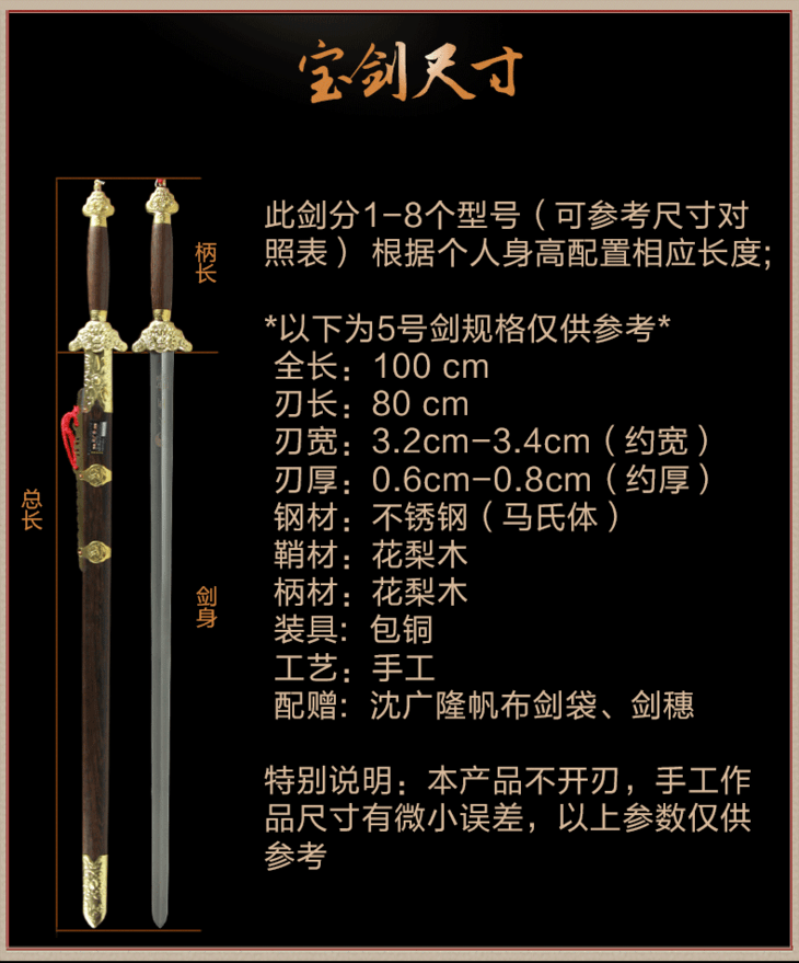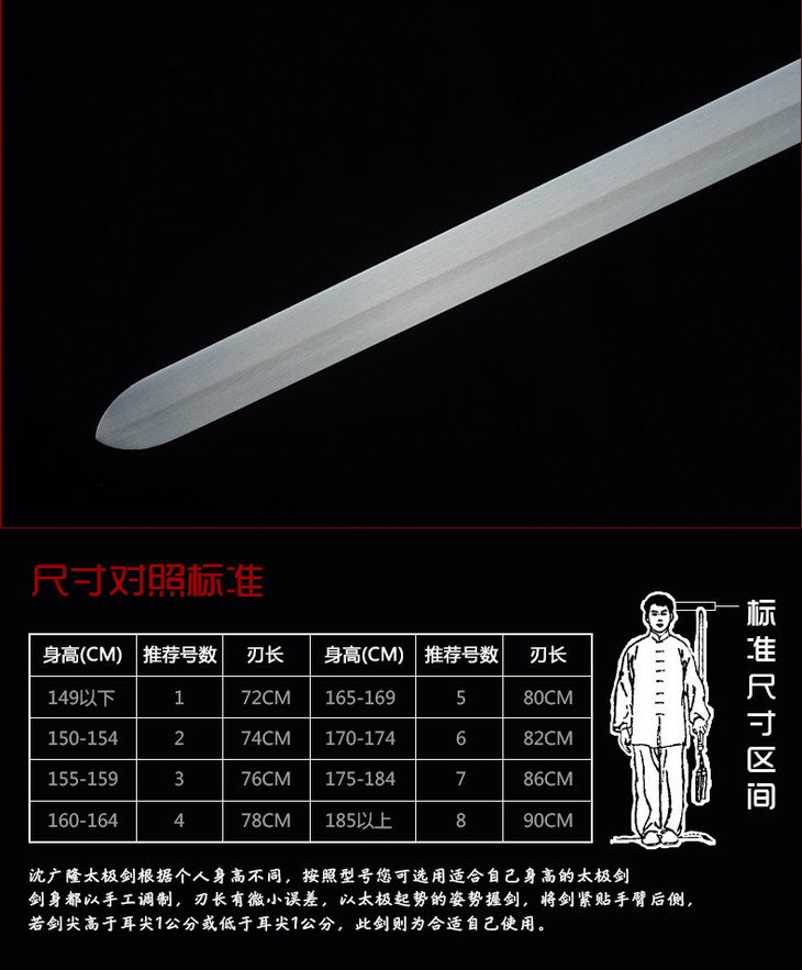 龙头太极剑 按身高 不锈钢剑 龙泉沈广隆宝剑 标准太极剑 工艺品 未开刃