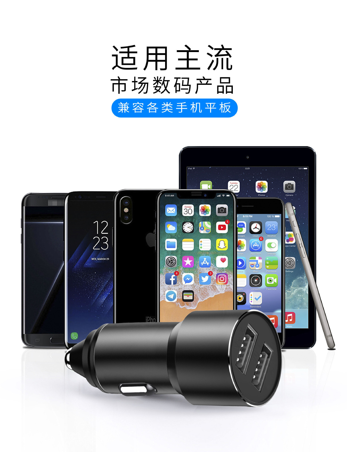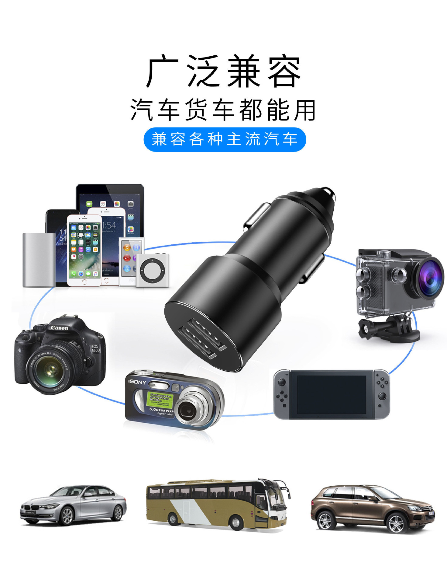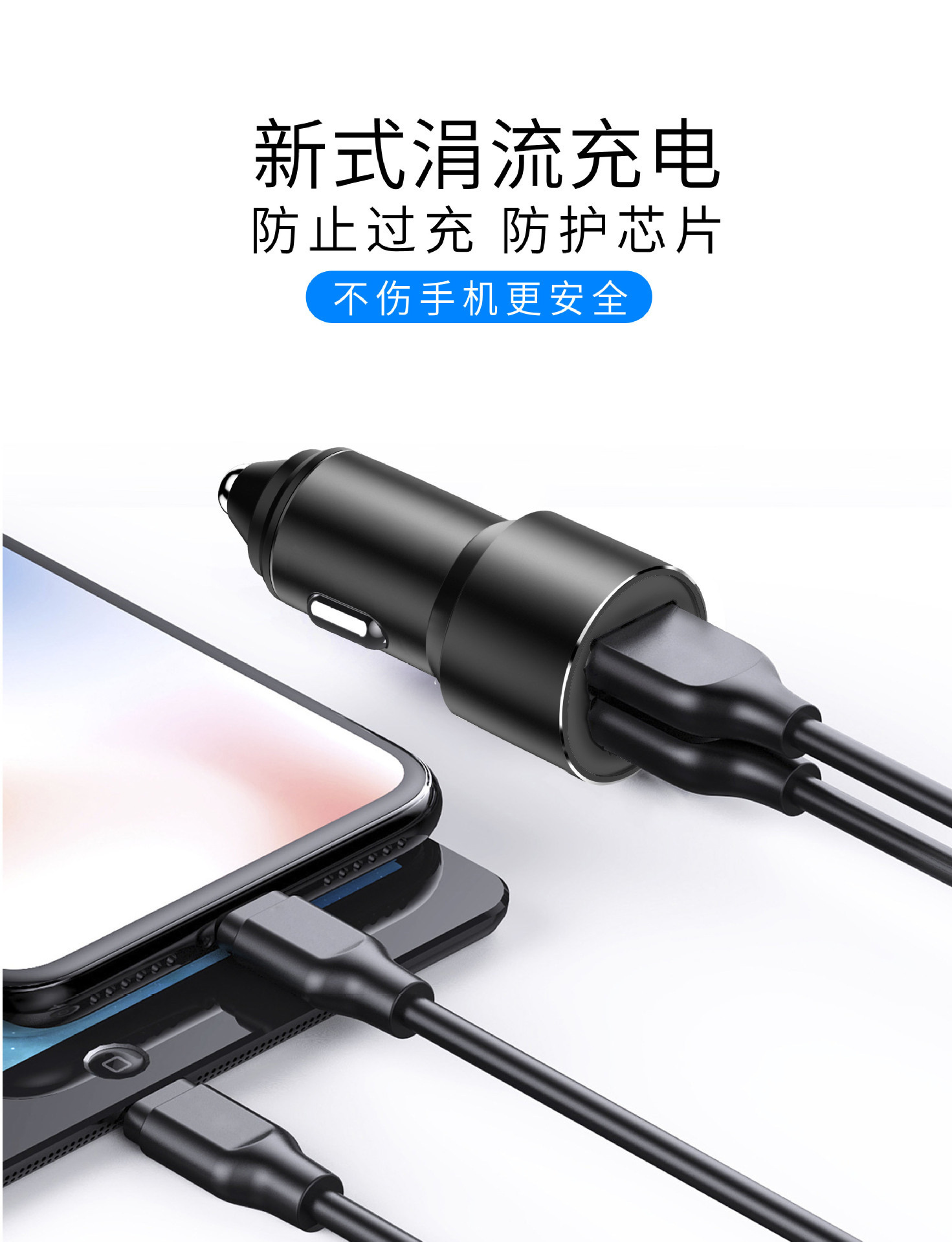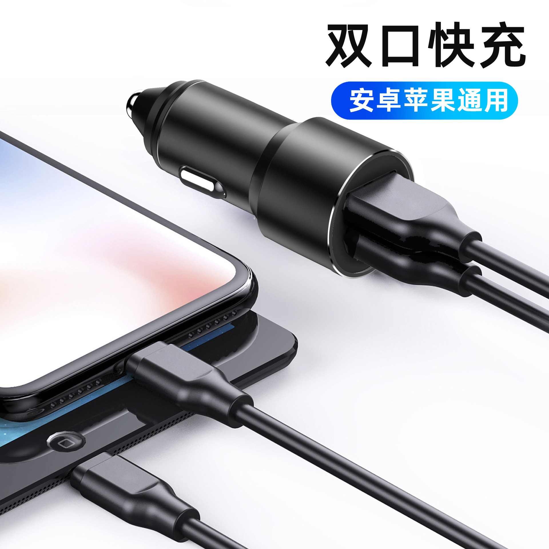 严选【金属铝合金一拖二车充银色】双usb车充3.4A车载智能快充手机车载充电器1个