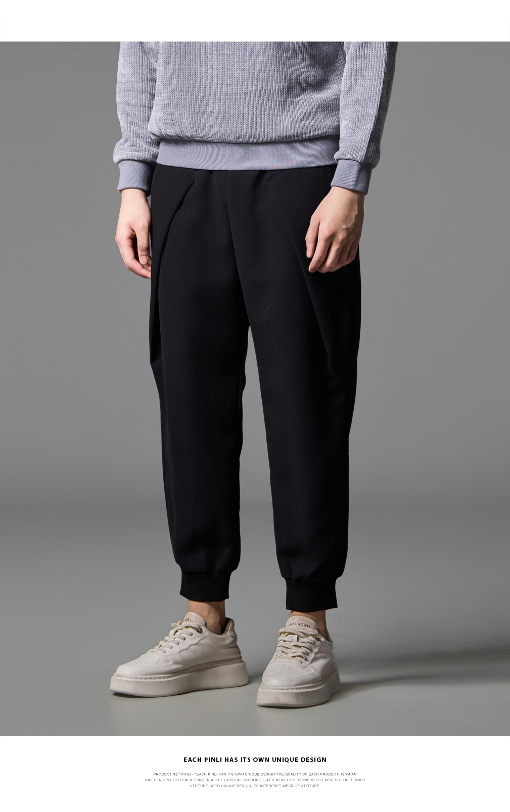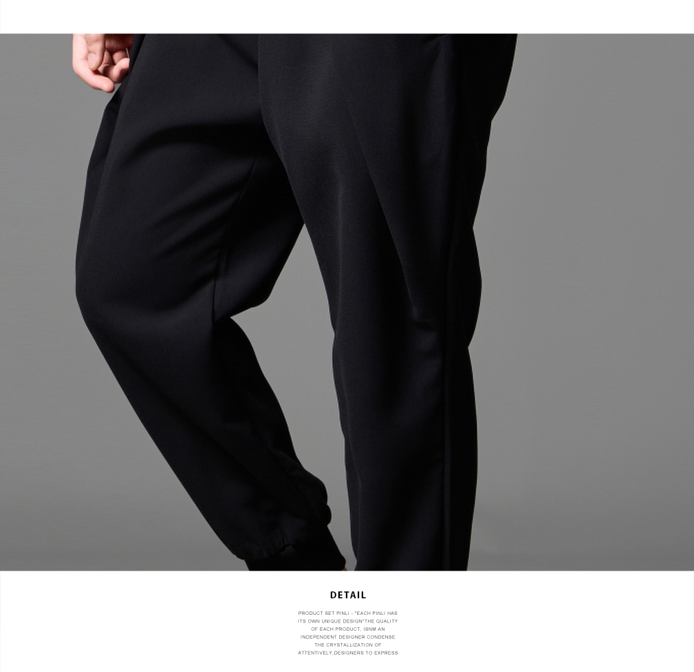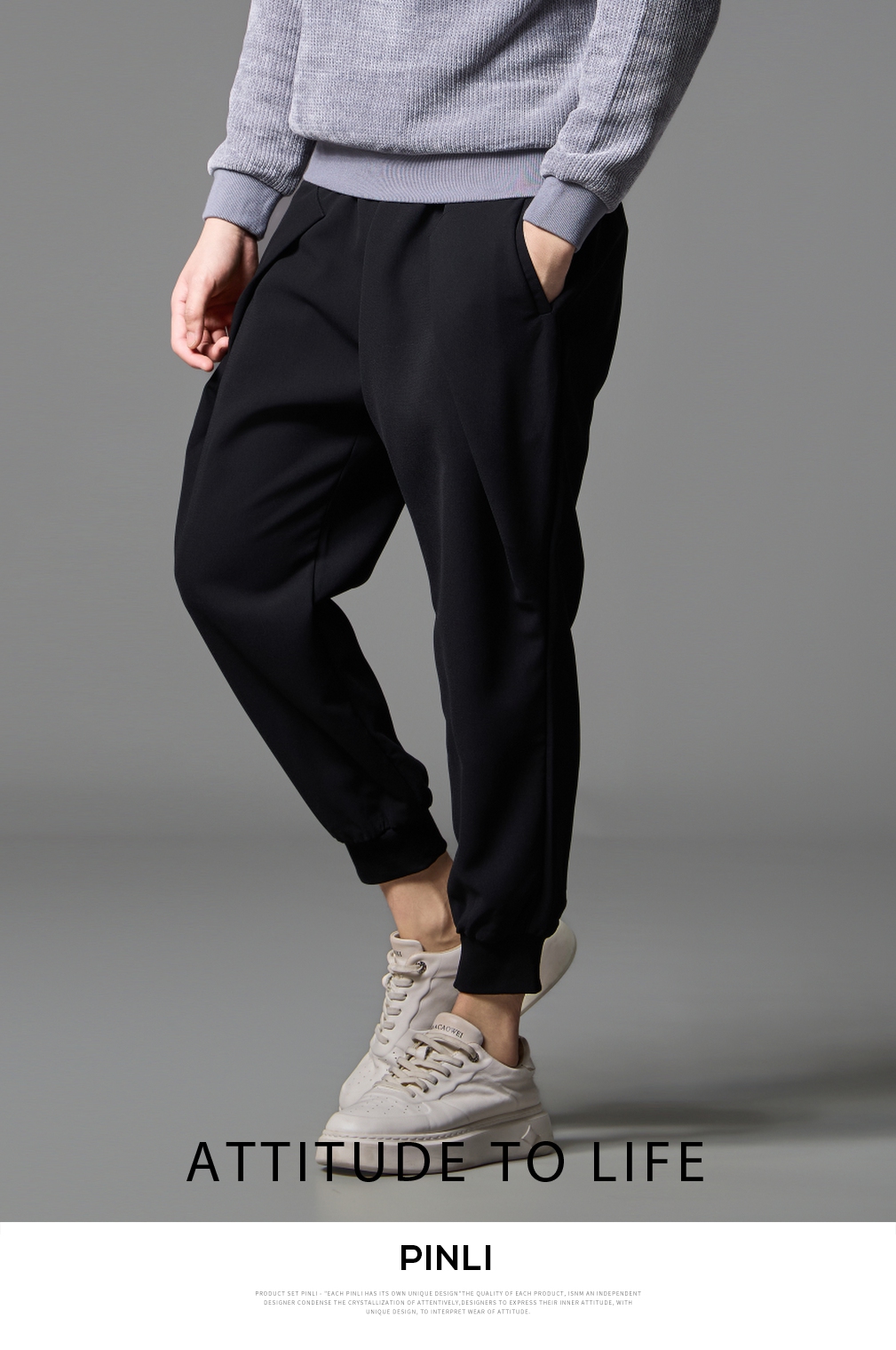 PINLI品立秋季新款宽松束脚九分裤男士潮牌个性黑色休闲裤子B243117051