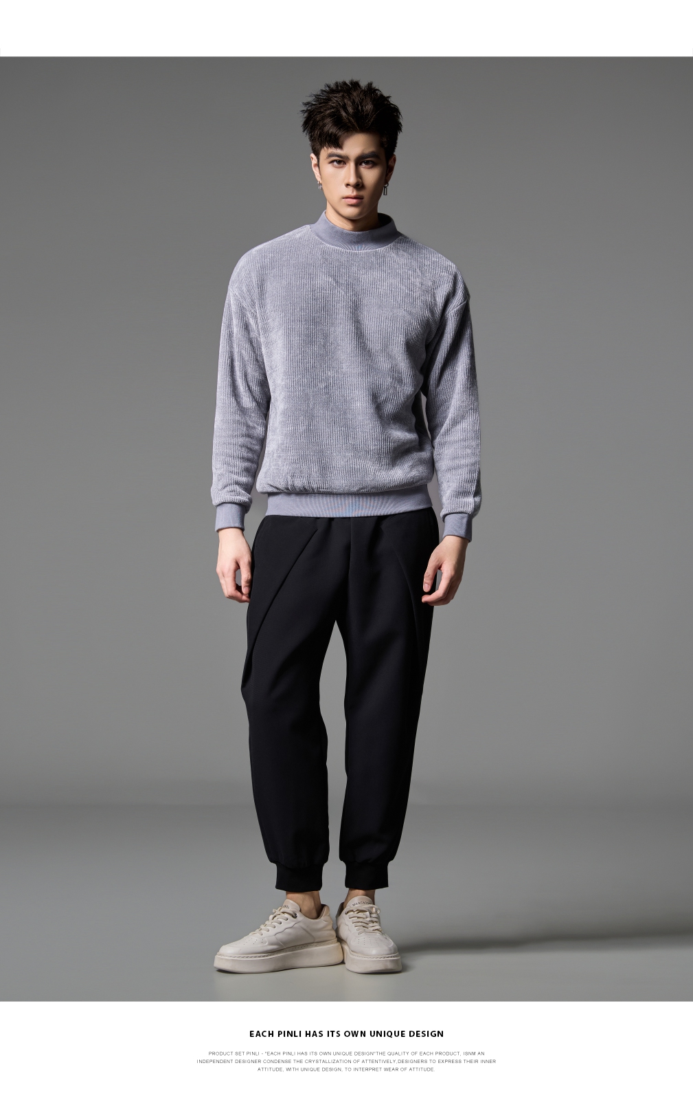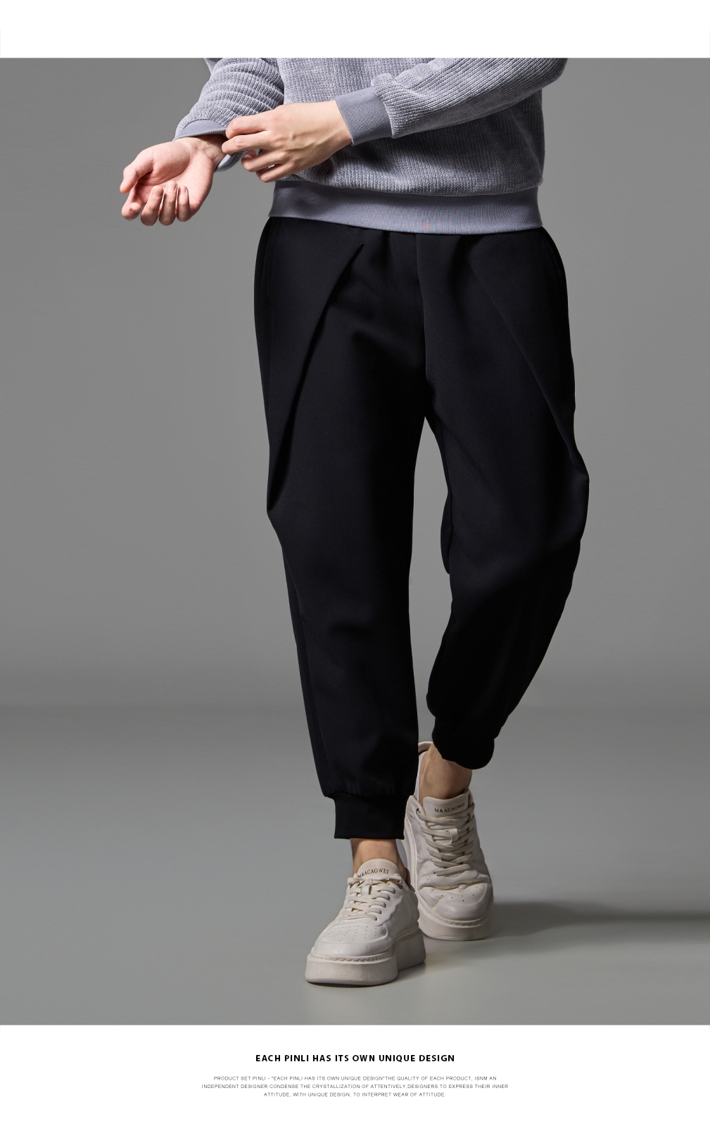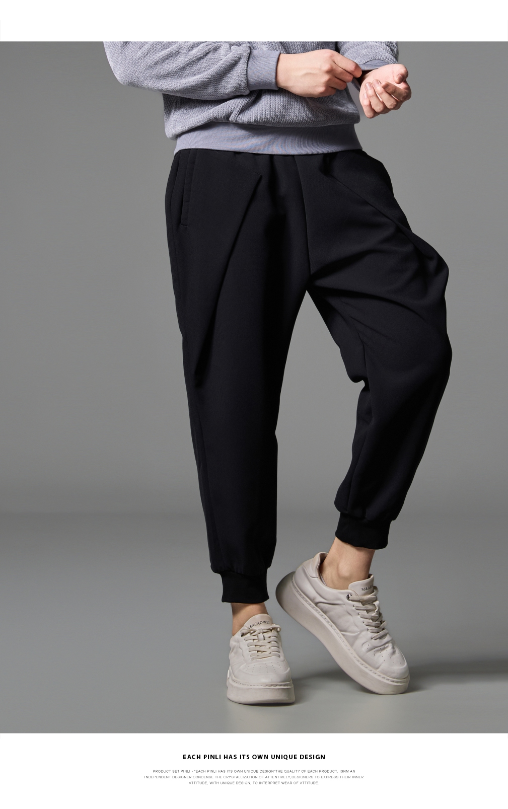 PINLI品立秋季新款宽松束脚九分裤男士潮牌个性黑色休闲裤子B243117051