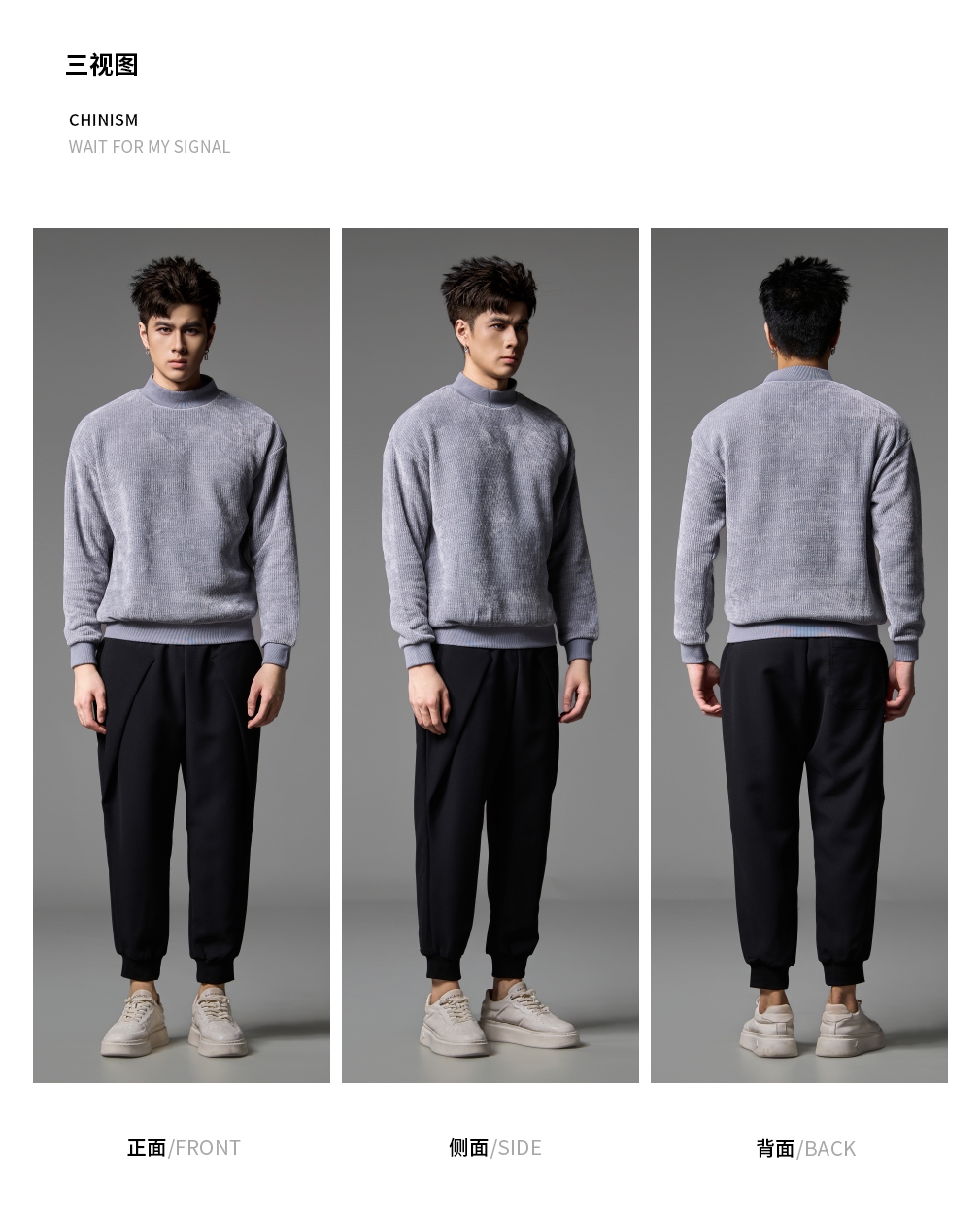 PINLI品立春季新款男士宽松立领亮片织带长袖T恤上衣体恤潮牌B253111106