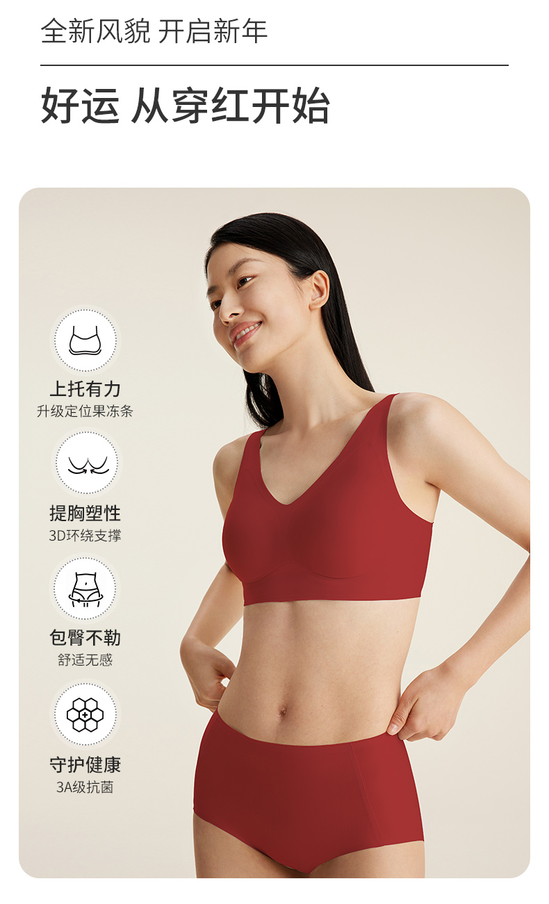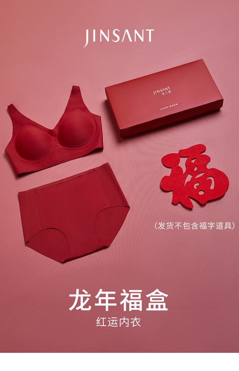 【红色舒适软支撑】桑蚕丝内里高弹文胸内裤套红色内衣本命年新年礼