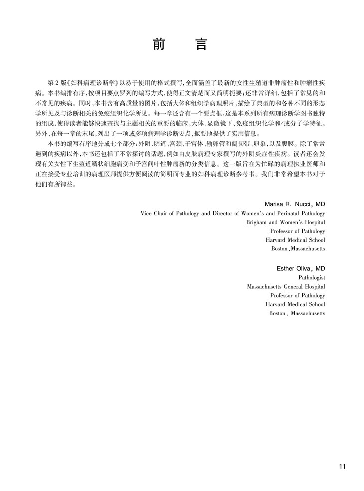 主编,Marisa R. Nucci,哈佛大学医学院病理学教授,布列根与妇女医院病理学副主席、妇科及围产期病理部主任。