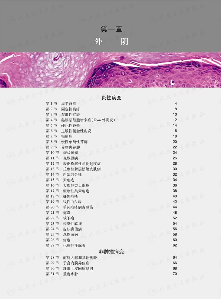 涵盖所有常见疾病,并由皮肤病理学专家对外阴炎症等少见话题进行广泛讨论