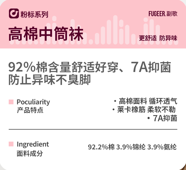副歌高棉时尚无骨透气抗菌新疆长绒棉女袜4双装1569(2月5号后发货)