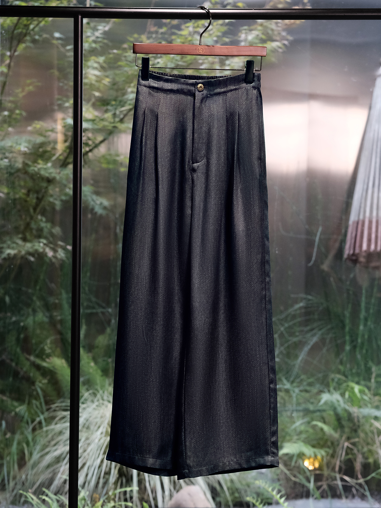 盛唐婧 | 梦华牛仔重缎香云纱直筒阔腿裤