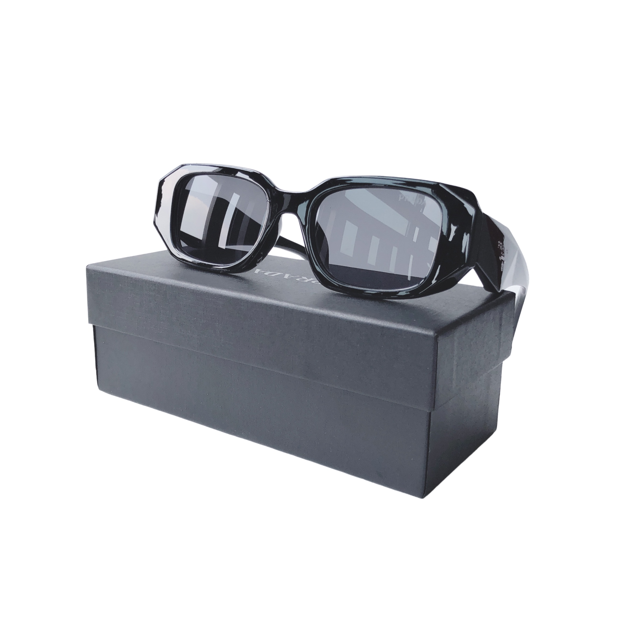 谱拉达矩形板材,潮流太阳眼镜,墨镜黑色,男女同款送男友!Prada Symbole 太阳镜,官网在售价¥ 3,900人民币!这款醋酸纤维太阳镜呈Oversize几何设计。粗镜框彰显前卫的正面廓形,倾斜式外缘别出心裁,定义设计风格。3D镜腿饰以标志性的Prada三角形徽标,绽现传统风范。商品货号: APR17W_E1AB_F05S0_C_051黑色醋酸纤维前框,镜框不适用于渐变镜片,UVA / UVB防护,亚洲款,镜片-鼻垫-镜腿尺寸:5.1-2.0-14.0厘米,产品配有专用包装!