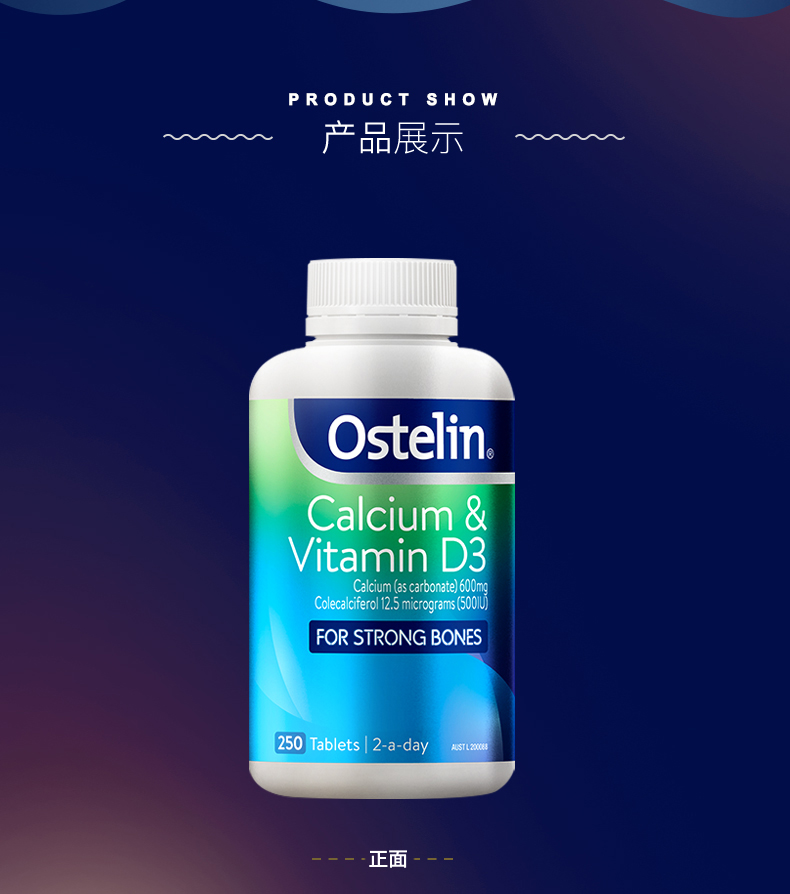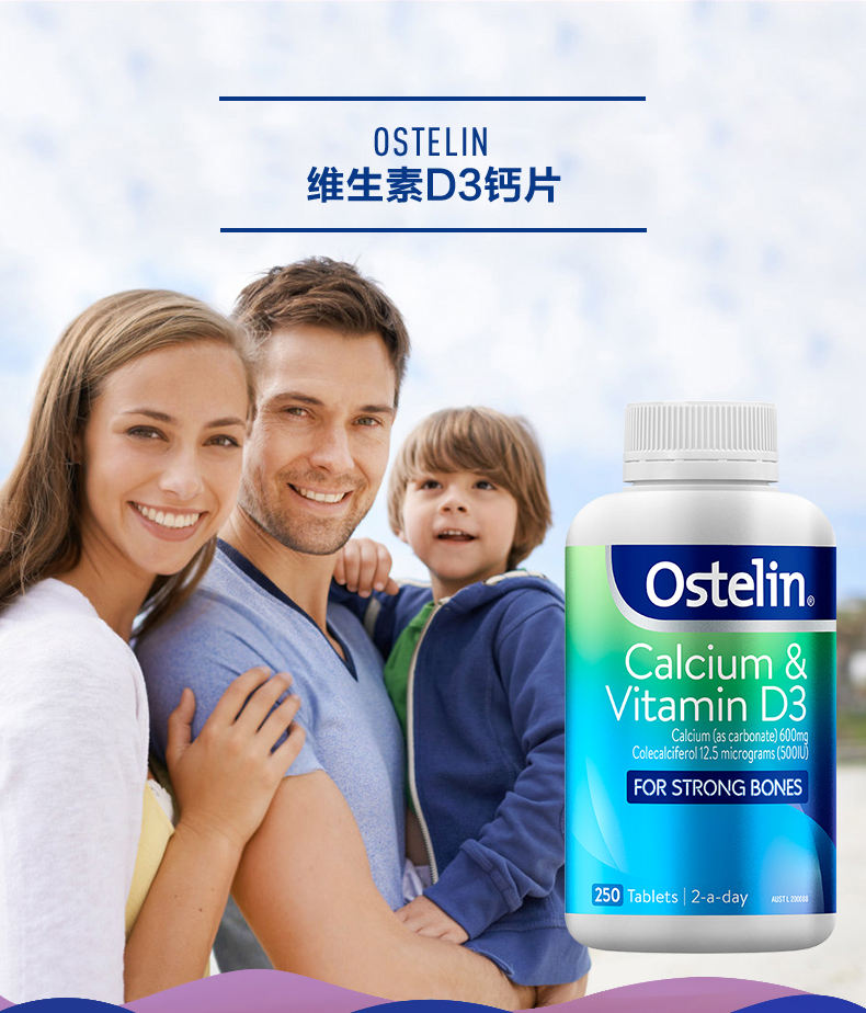 澳洲ostelin进口钙片+维生素d3钙片恐龙补钙成人钙片250粒