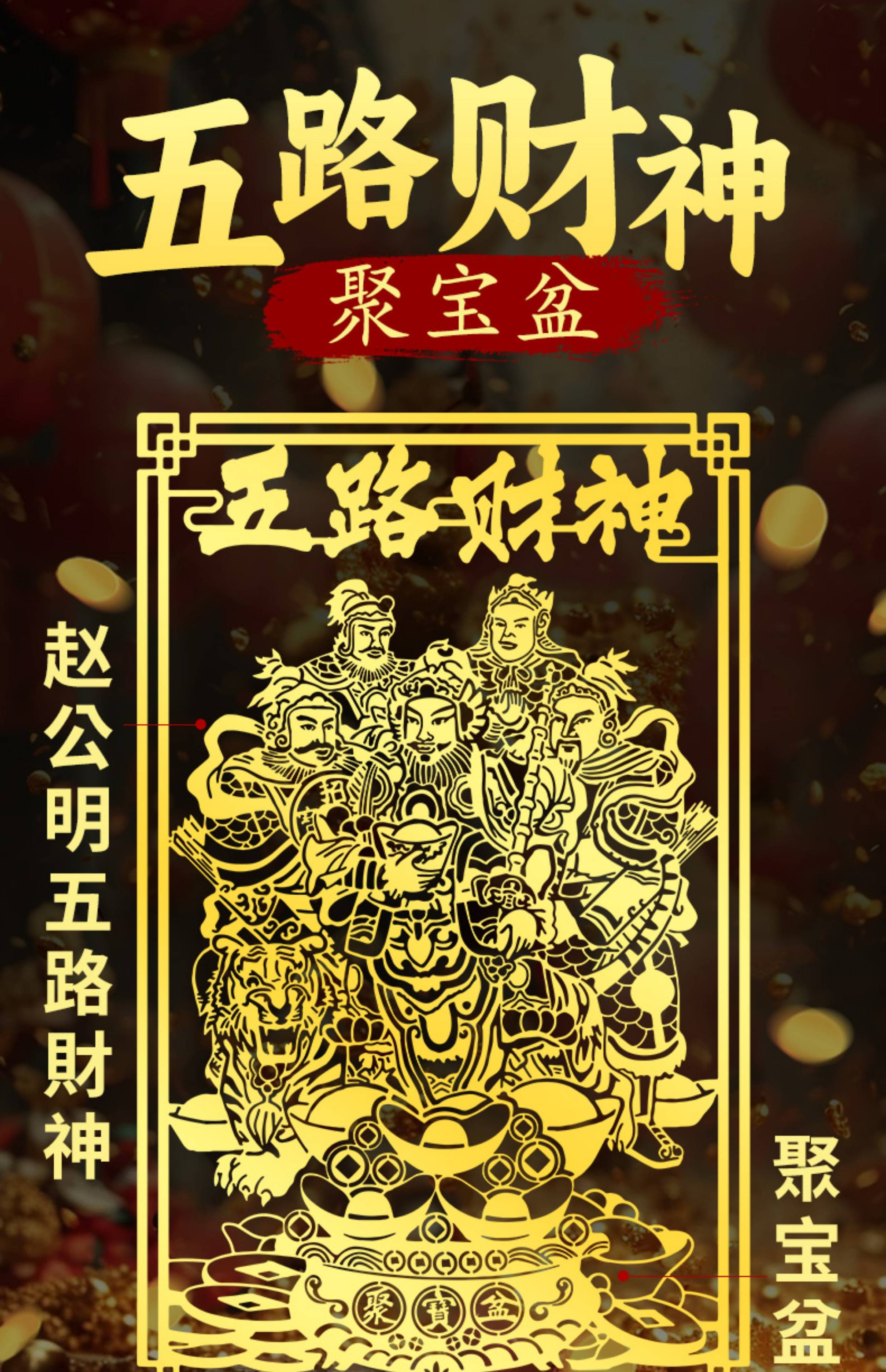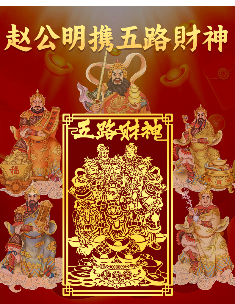 五路财神金属手机贴