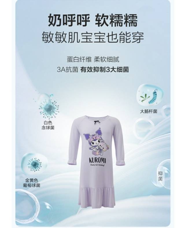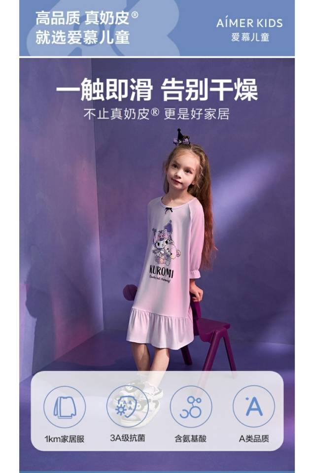 【春上新】8楼爱慕儿童Aimer Kids女孩奶皮酷洛米梦幻熊七分袖睡裙AK144H161,吊牌价399元