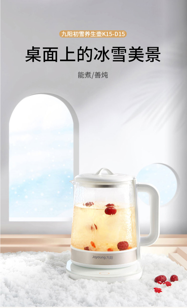【初雪质感】Joyoung/九阳K15-D15初雪养生壶锤纹玻璃1.5升