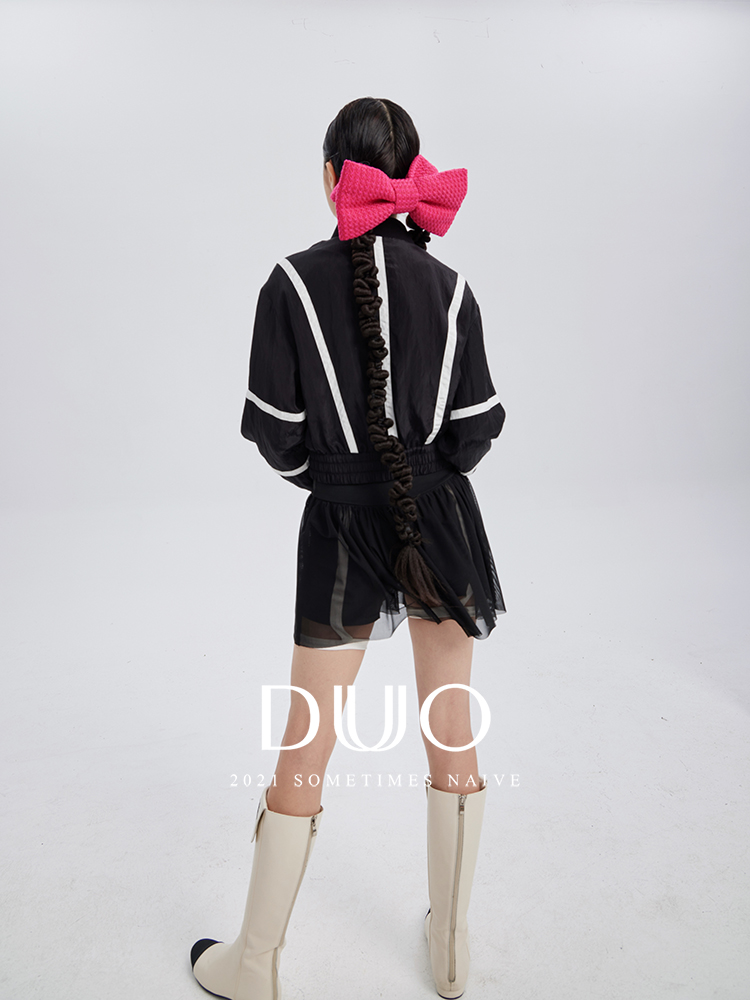 黑标复古香nai儿风格黑白经典运动夹克小外套