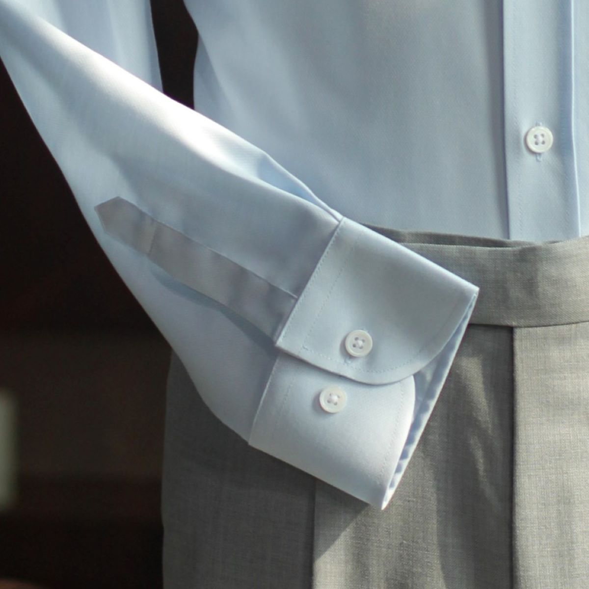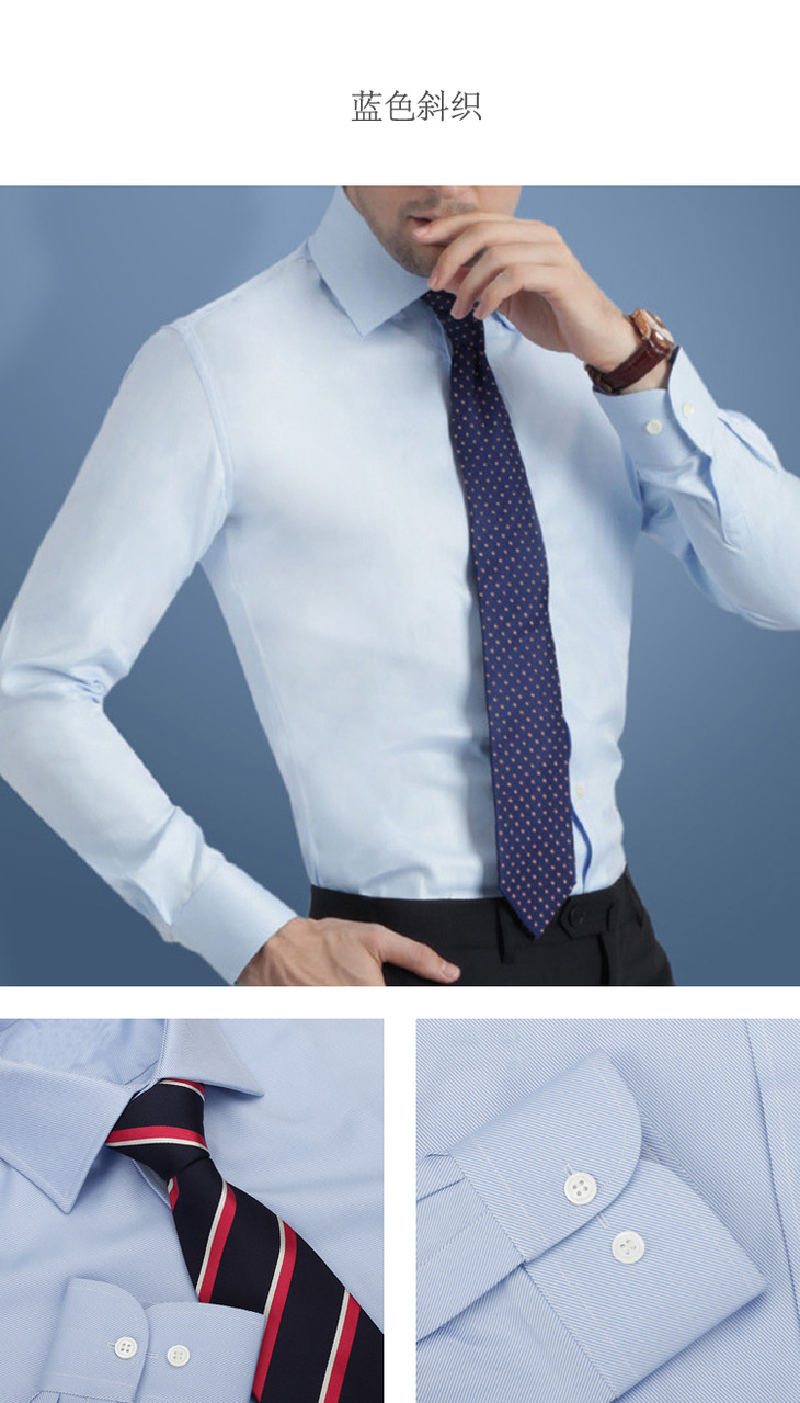 半免烫蓝色斜织英式衬衫