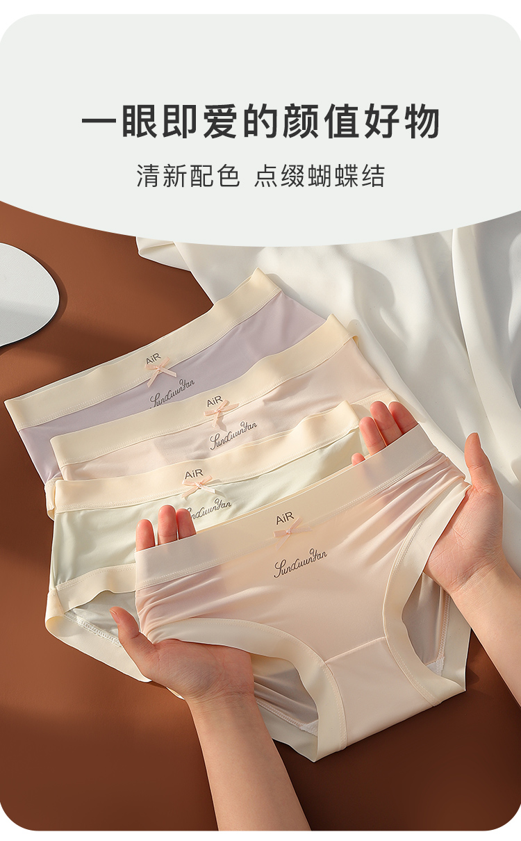 无痕冰丝凉感透气三角内裤女抑菌纯棉底裆Ai9#冷皮冰丝内裤4条装