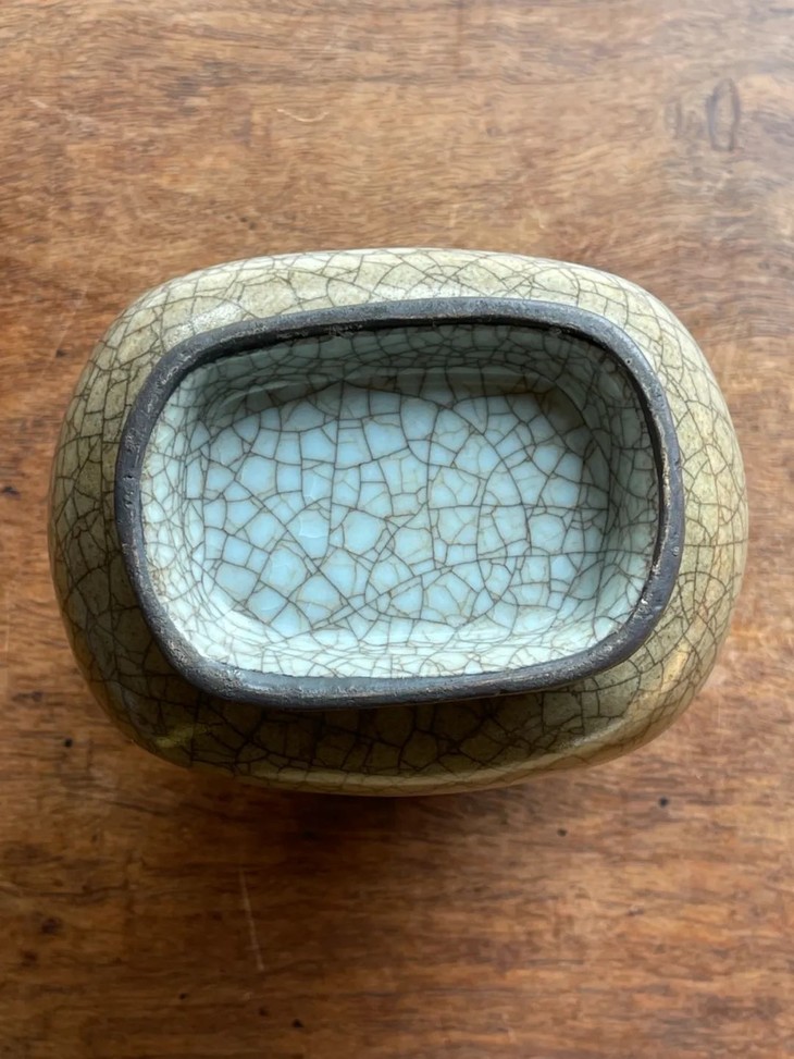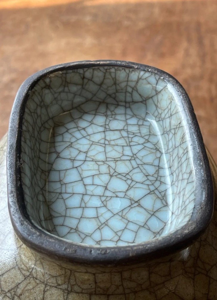 此仿宋黑胎哥窑灰青釉贯耳壶,制作严谨品质精良,气质优雅,双层黑褐两色开片流畅自然,与古籍所描述的宋代哥窯釉相去不远,是清中期仿宋哥窑的佳器。如今摆放茶席当摆设或是实用的花瓶与赏瓶,可感受宋代帝王器具的独特气质。