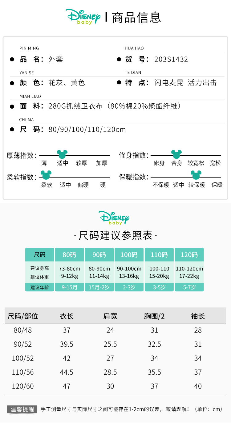迪士尼男童宝宝潮春秋加绒保暖时尚棒球服夹克外套203S1432