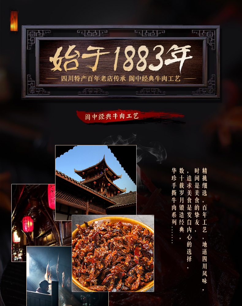 - 四川省非物质文化遗产,盐叶子牛肉,清真干牛肉,酥软鲜香,入口化渣。四川省阆中市地方特色风味小吃。阆中华珍风味食品公司直营,华珍牛肉唯一有赞官方旗舰店。