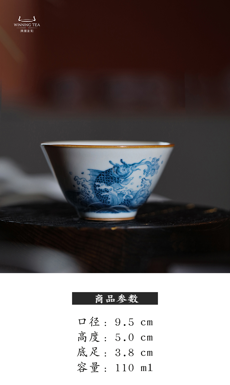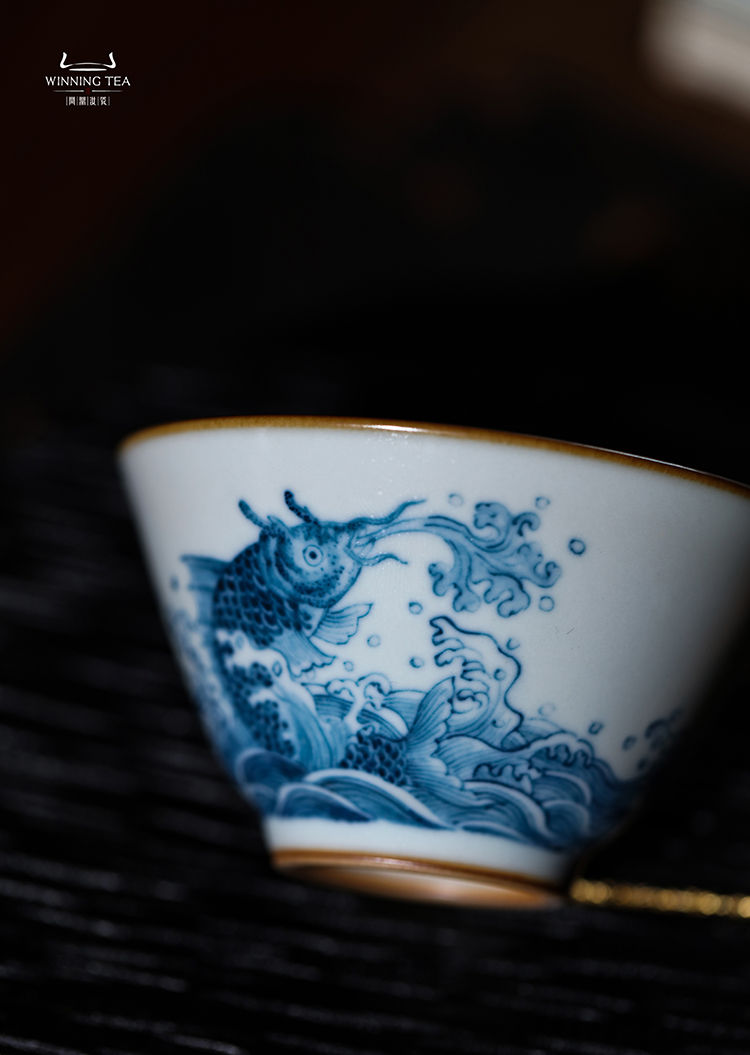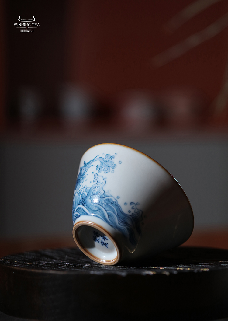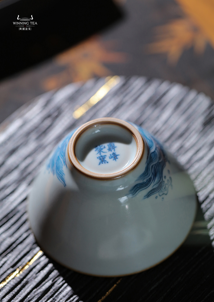 问鼎汝瓷鼎峰柴窑天青淳和杯(鱼戏海波)
