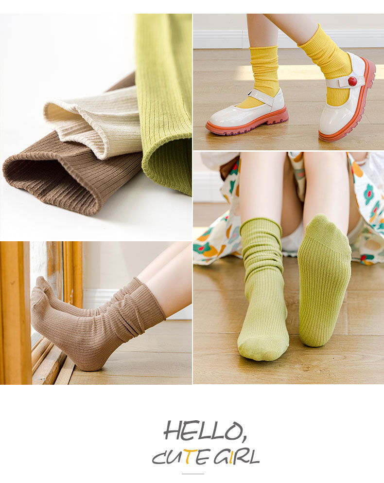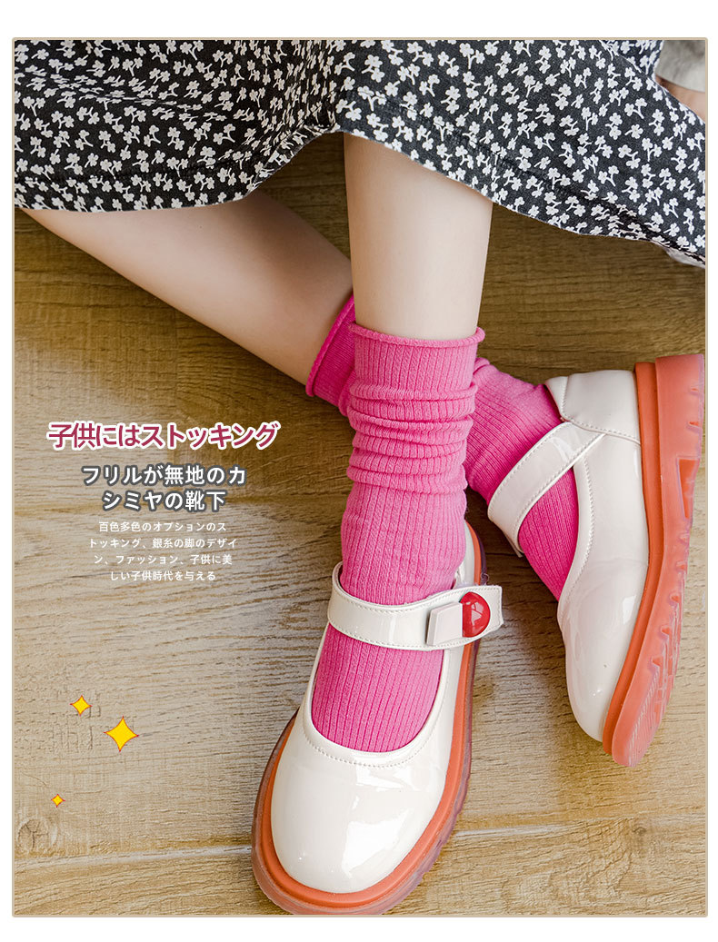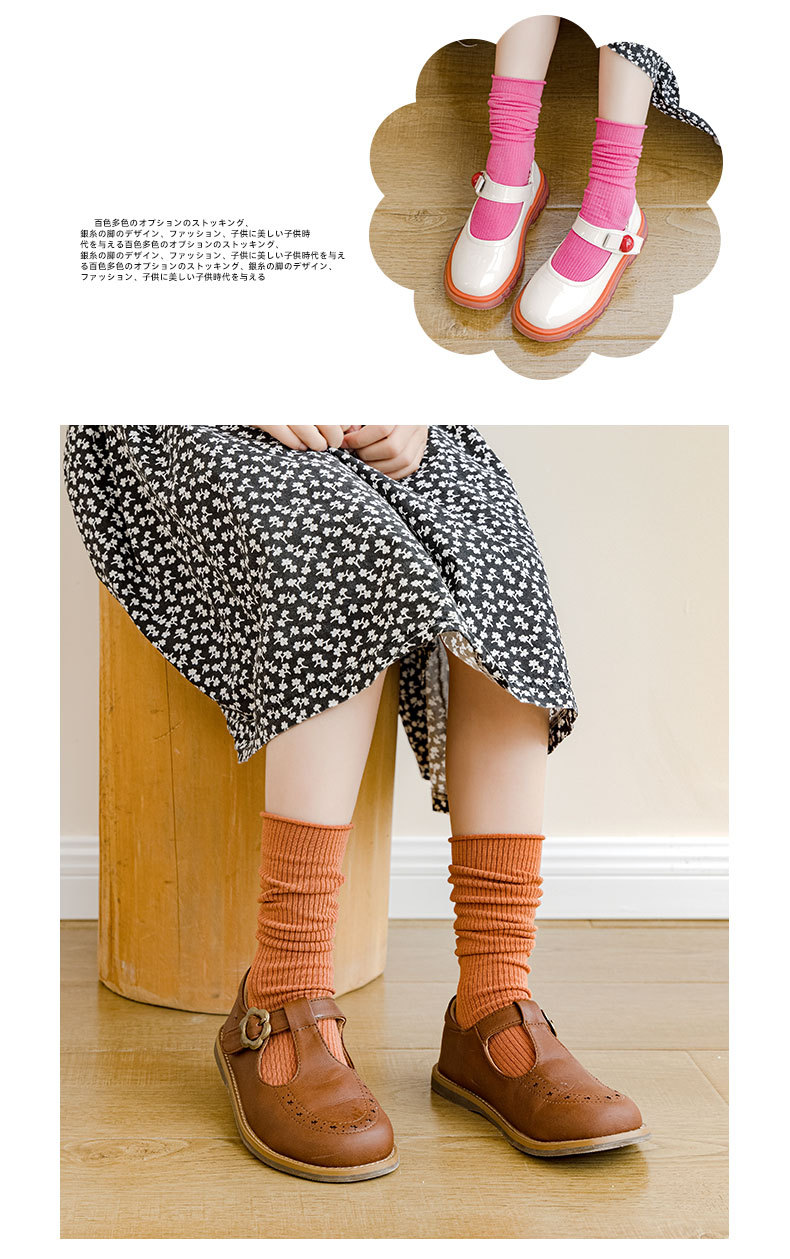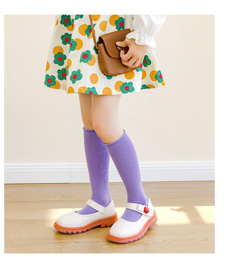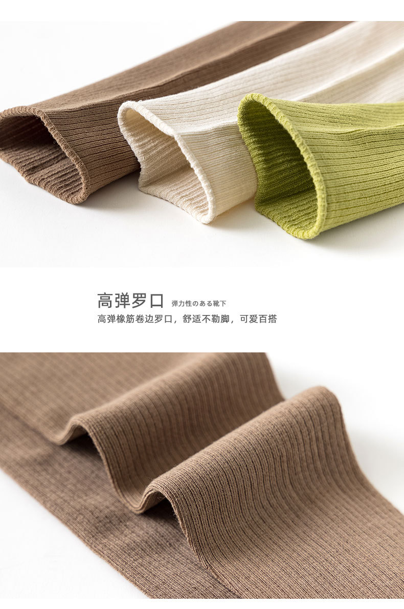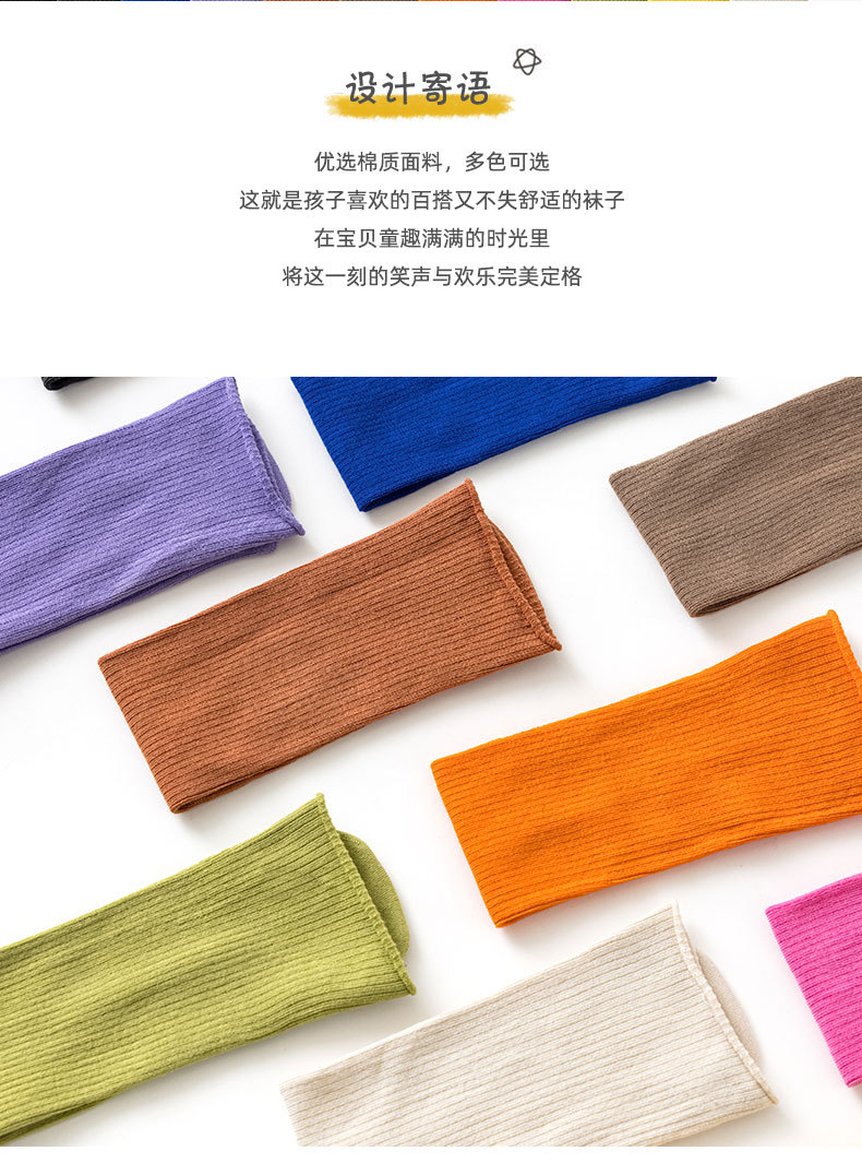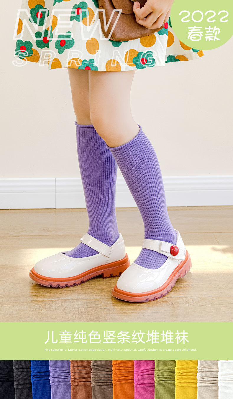 【2双装 儿童纯色竖条纹堆堆袜】春夏季纯色森系棉质女童过膝袜竖条堆堆袜子韩版小腿袜童袜