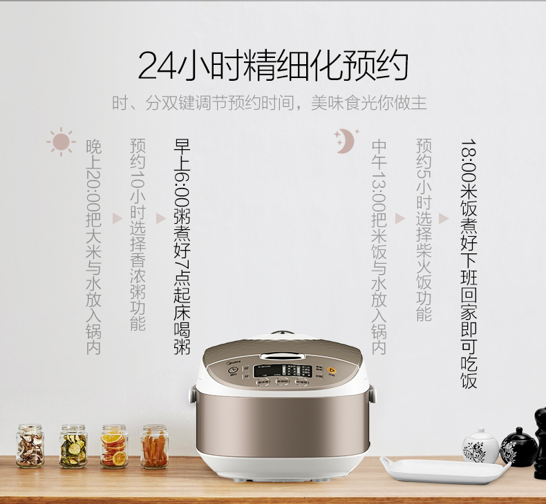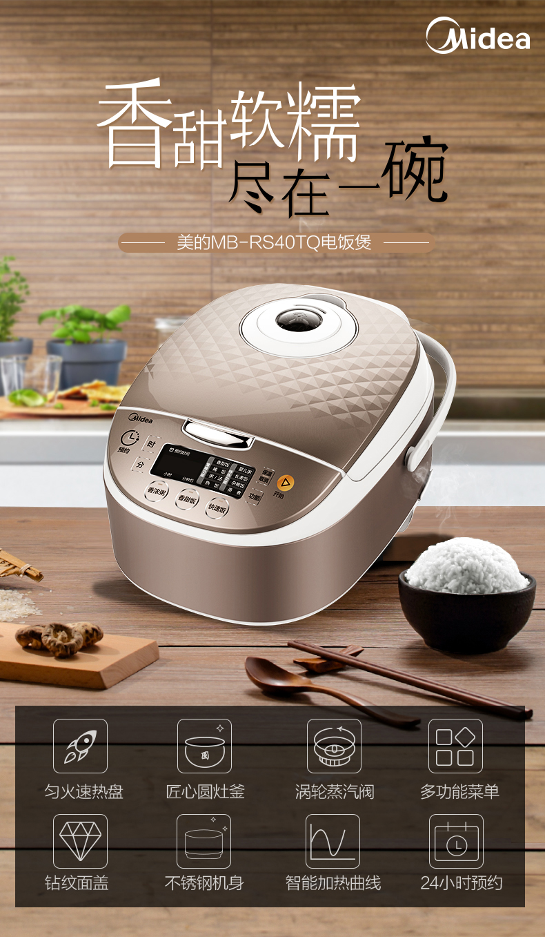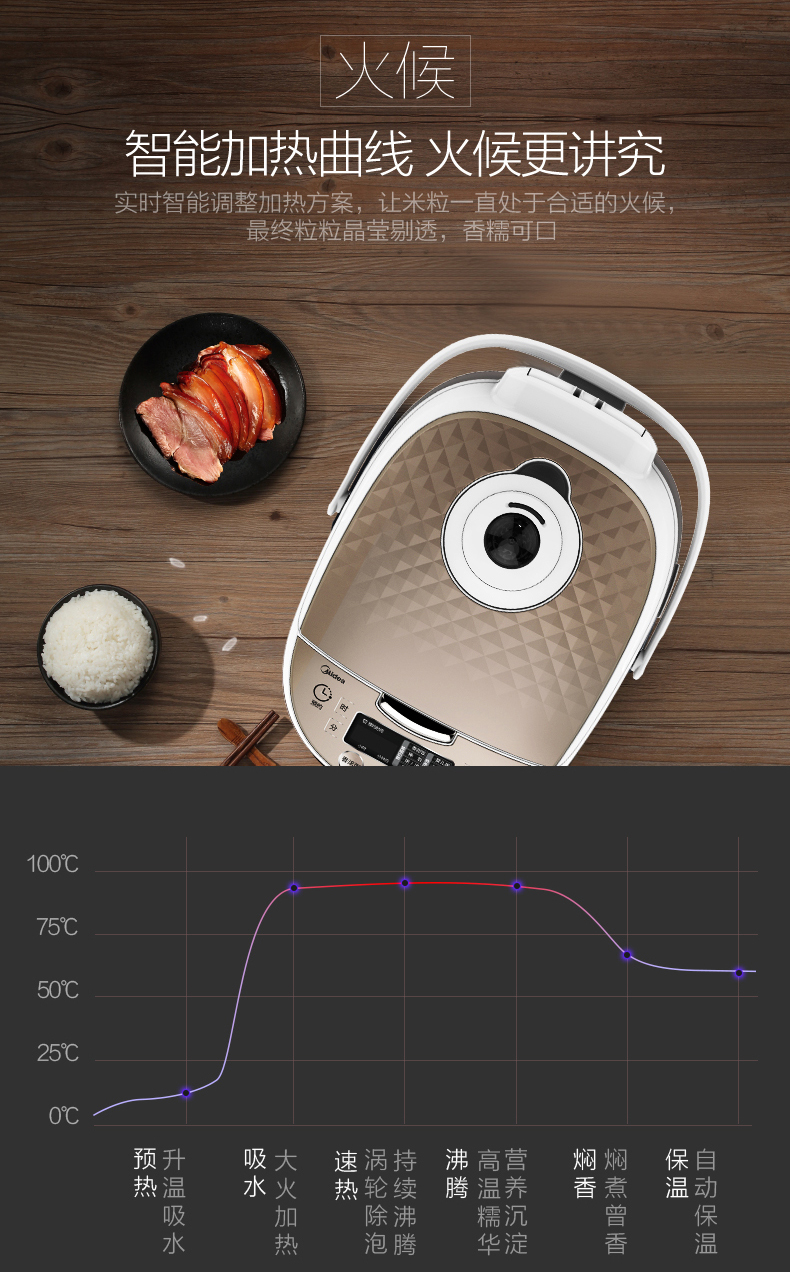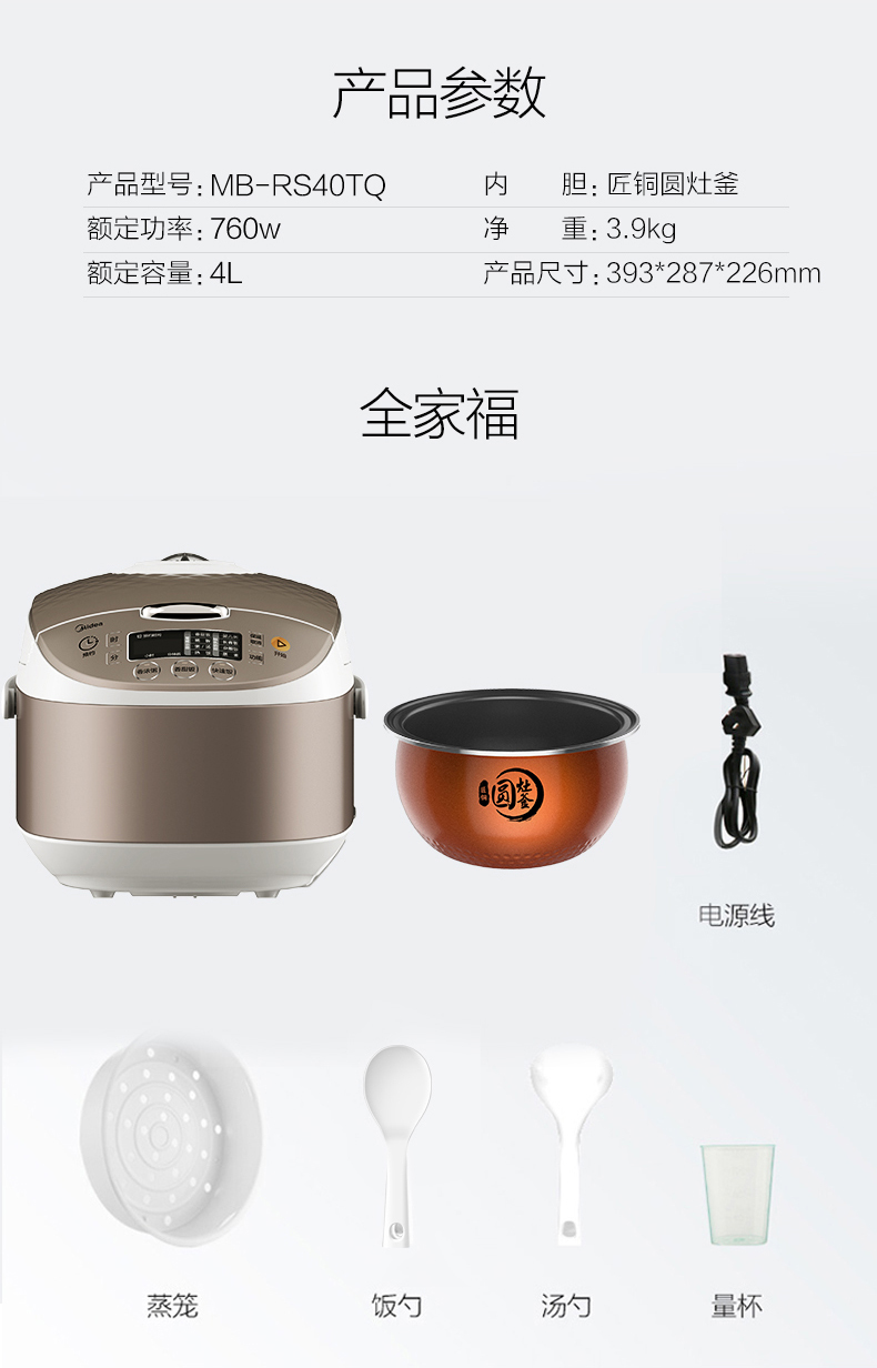 美的(Midea)电饭煲 匠铜圆灶釜 匀火速热盘 24小时预约MB-RS40TQ