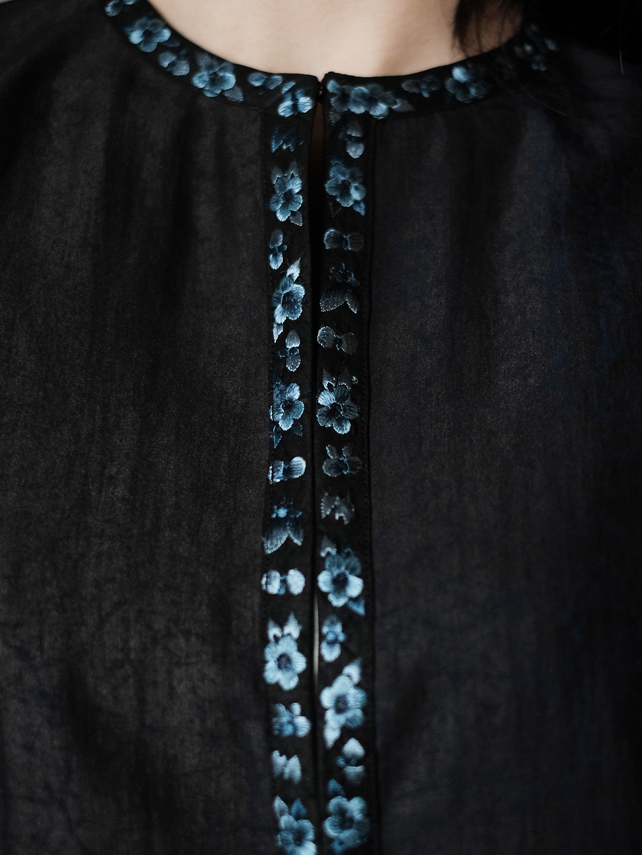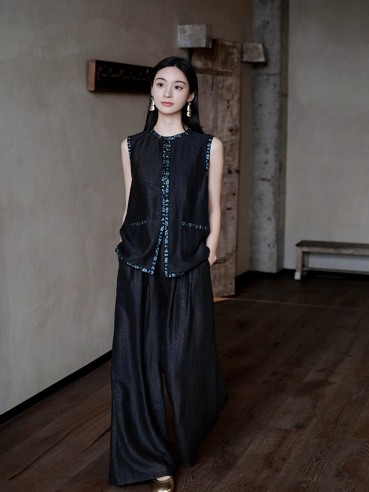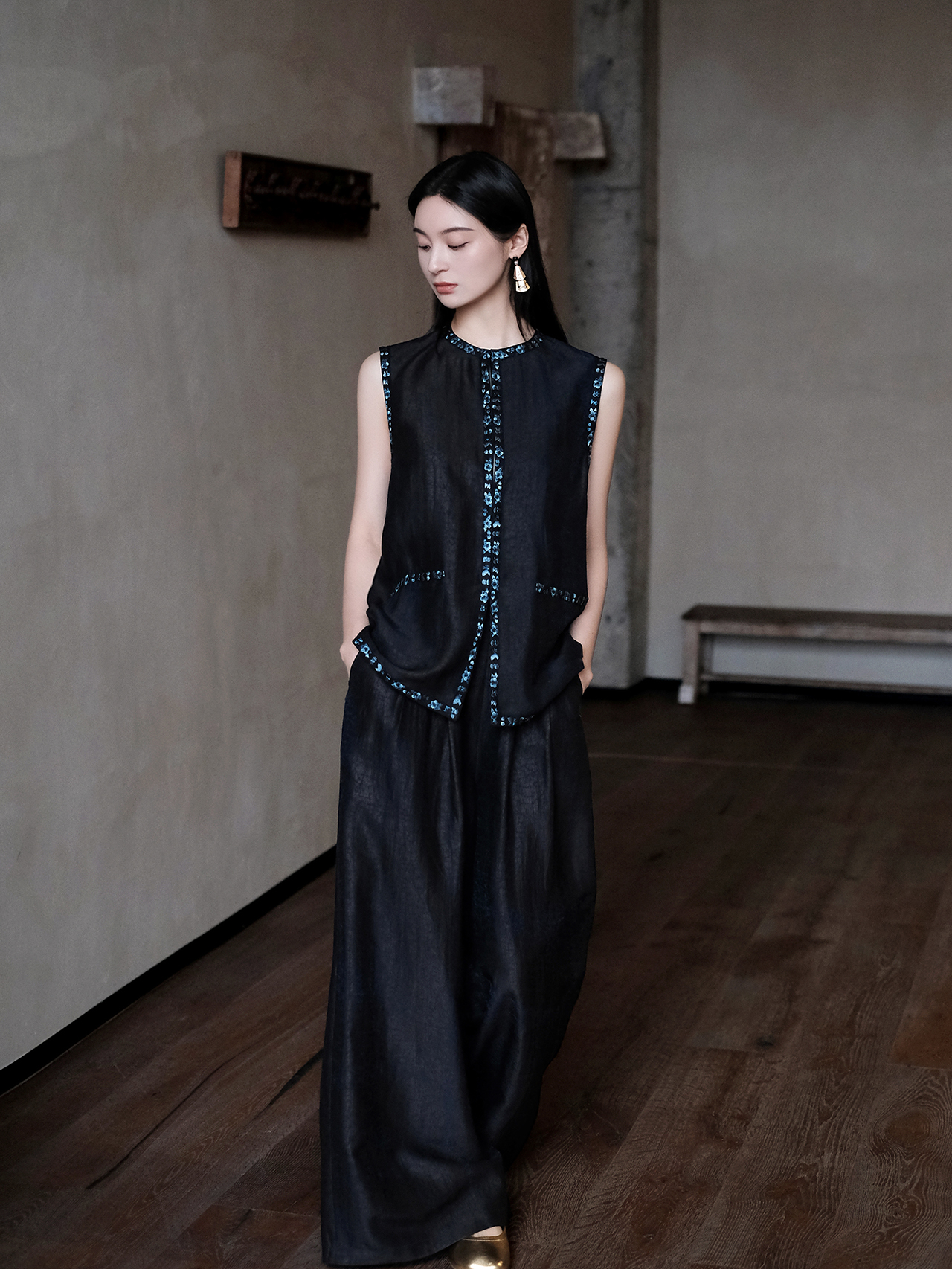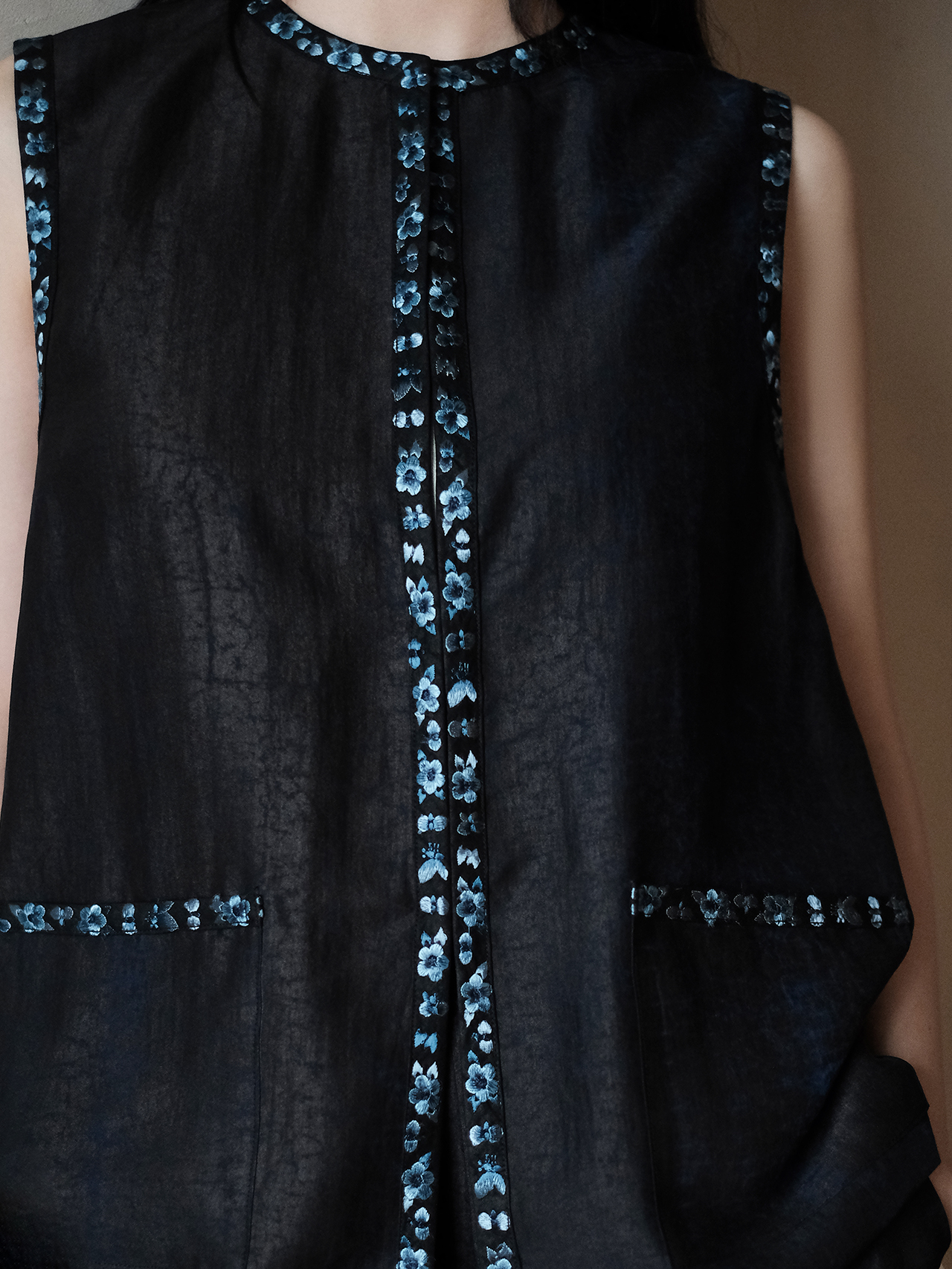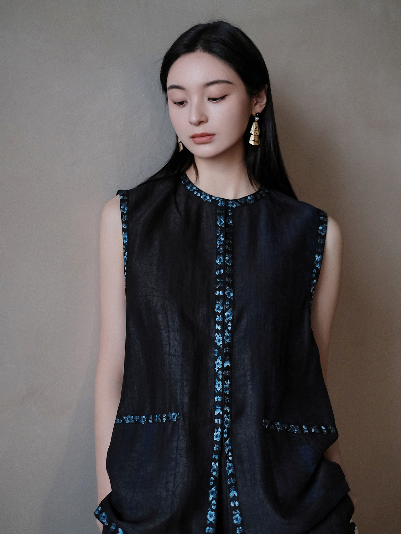 盛唐牡丹盛奢系列 | 青金石色龟纹香云纱三蓝绣马甲