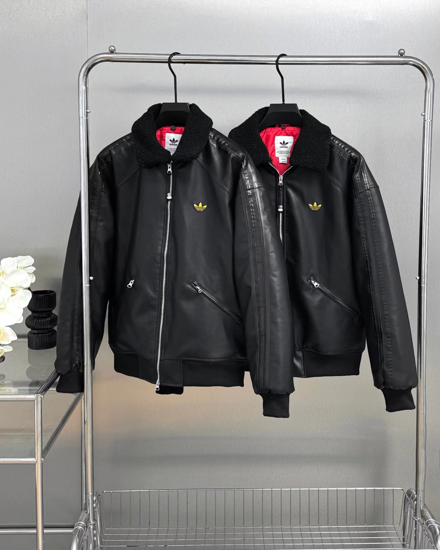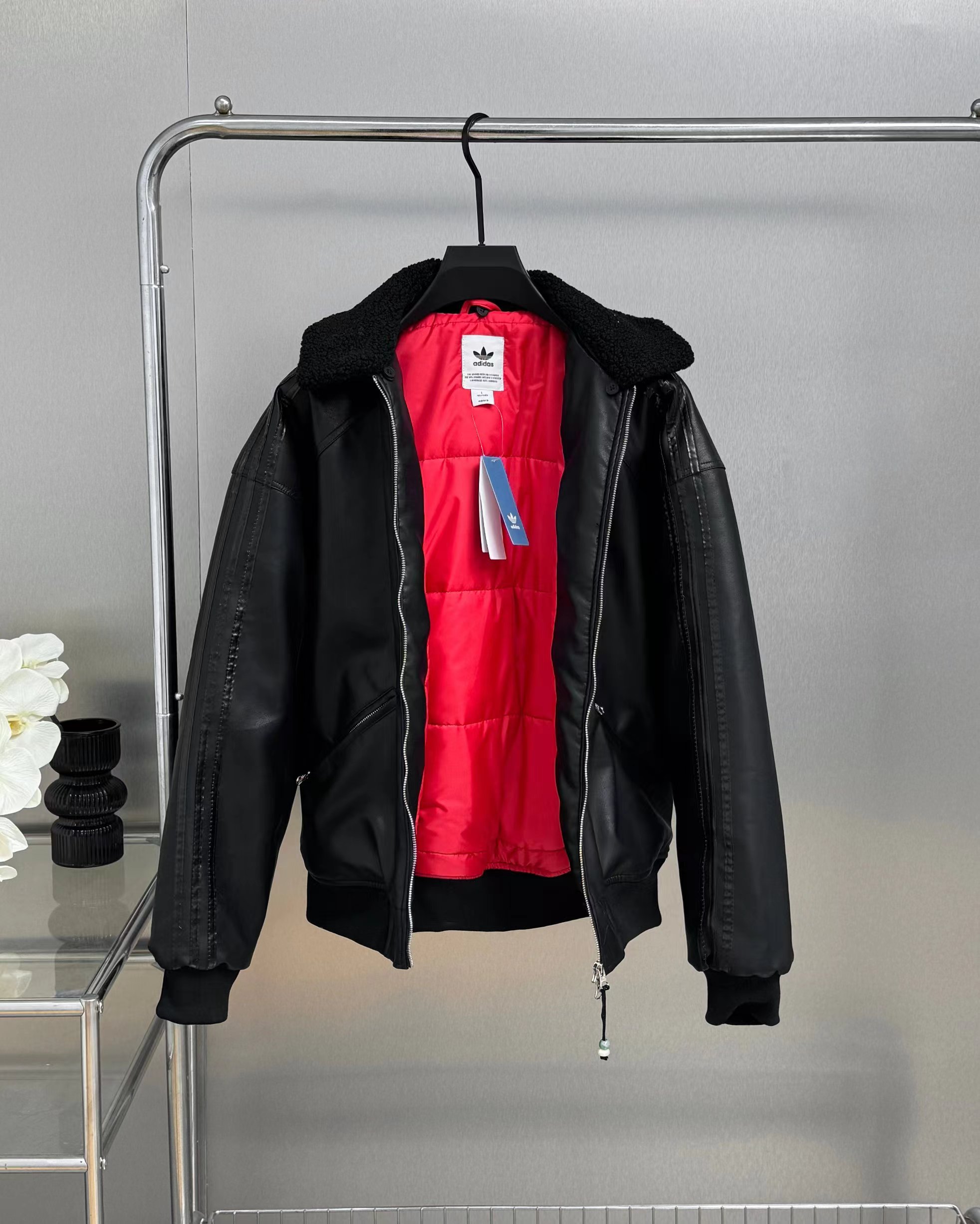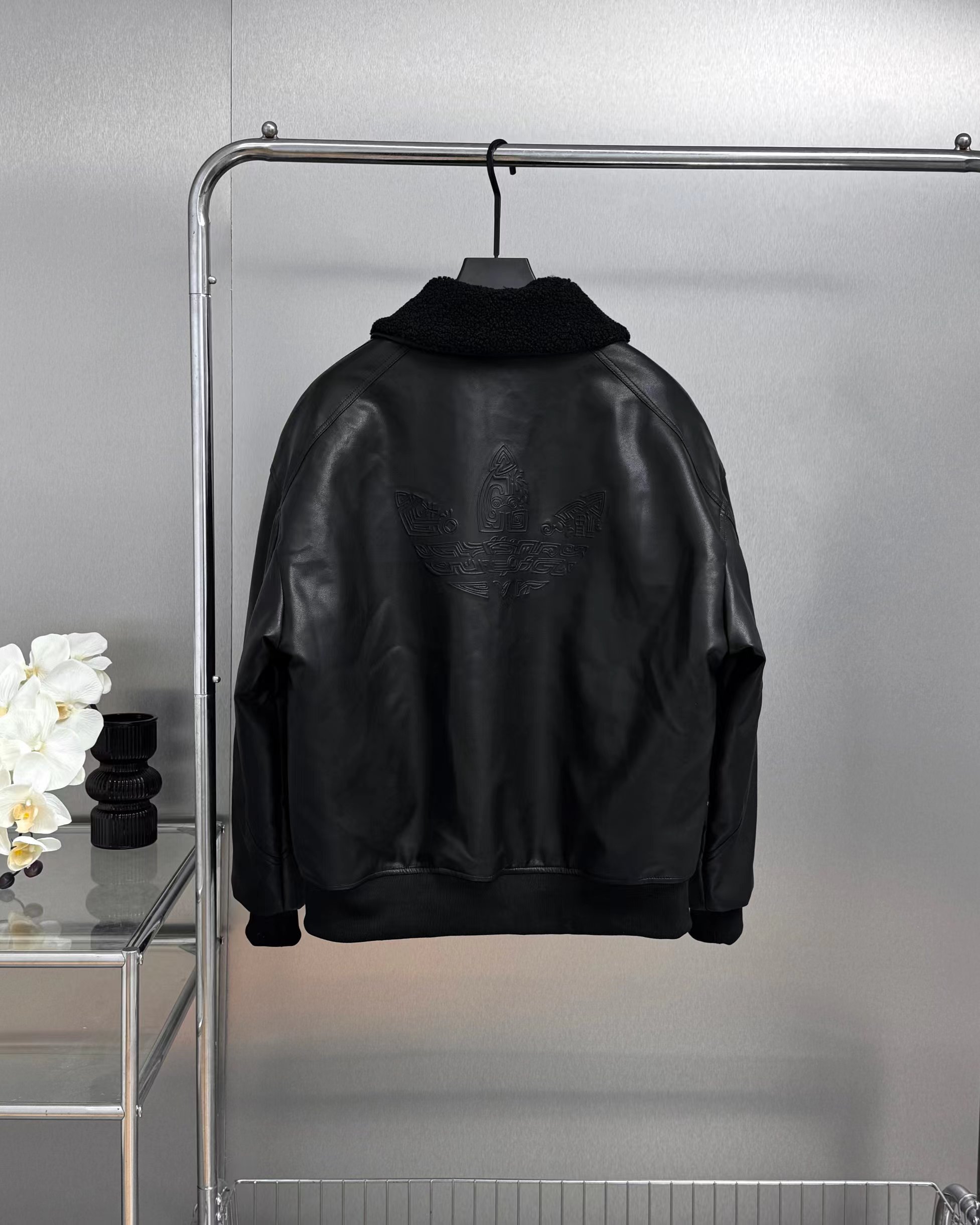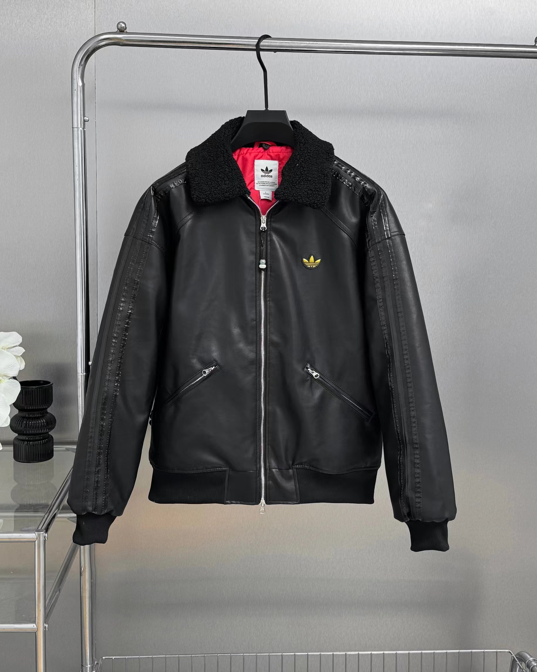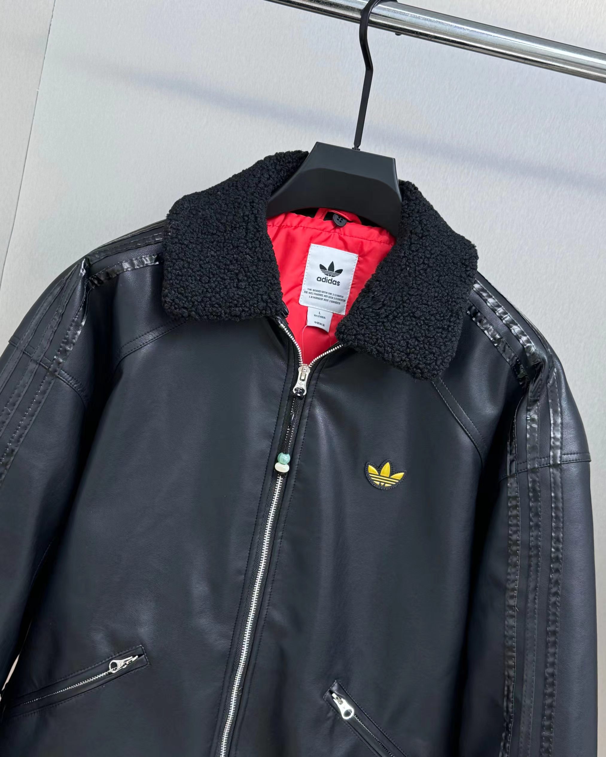 蛇年限定 LNY PLEATHER 仿皮翻领美式复古保暖运动翻领长袖皮衣夹克外套 面料采用定制pu皮面料,原版钢印开模,皮质柔软,保暖又不会显臃肿,整件衣服原版剪裁设计非常个性,立领夹克的版型上身超酷,胸口刺绣logo搭配纯色整体,简约又不简单,下摆两侧都有口袋,定制拉链,插肩袖的版型尽显复古风,男女同款上身效果百搭!