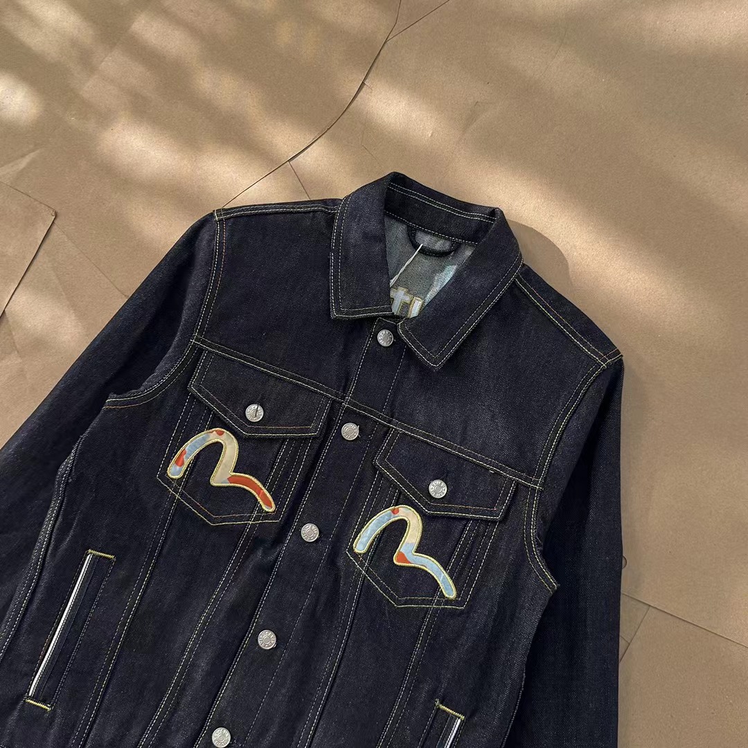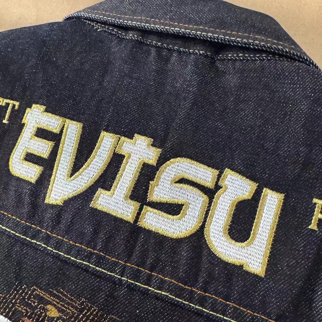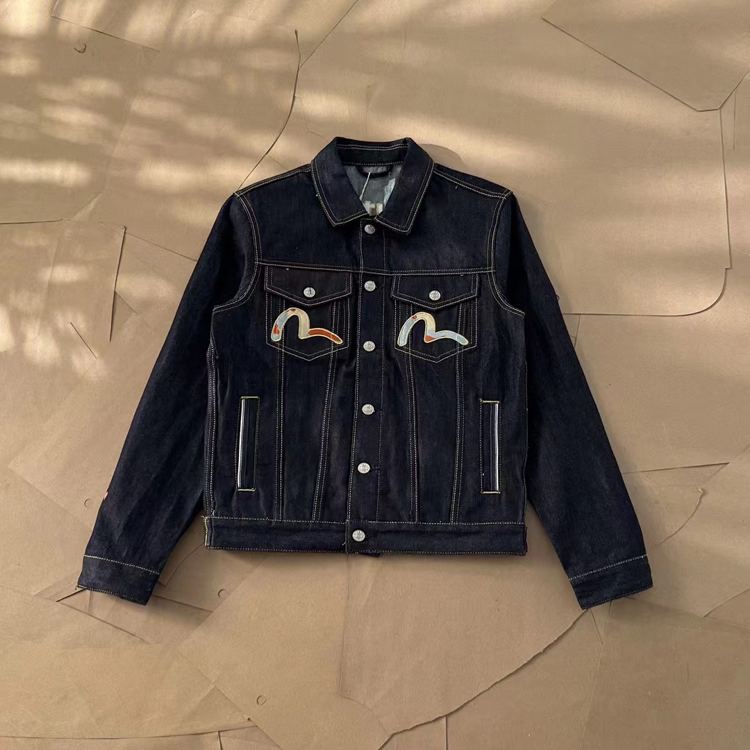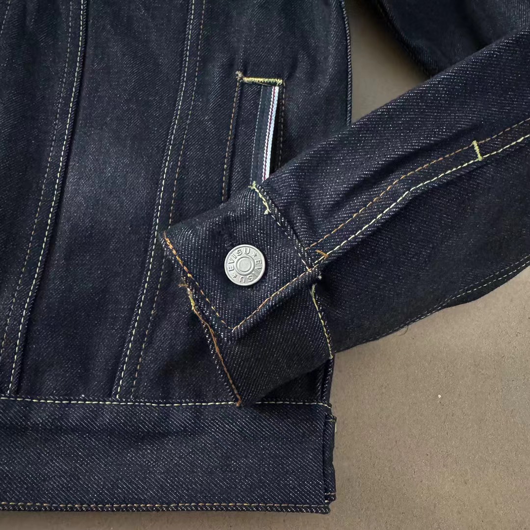 25SS男士双狛犬刺绣牛仔夹克 以守护神社的日本传说瑞兽狛犬为主题,原色牛仔外套背面以夕阳家花、双狛犬与黄金五谷图案刺绣装饰,加上织锦小海鸥和商标贴布,为单品添上华丽贵气。原色重磅原版复刻赤耳面料、胸前订制樱花扣 版型偏大 洗水后原浆面料都会缩水
