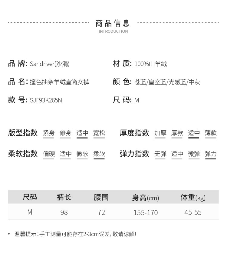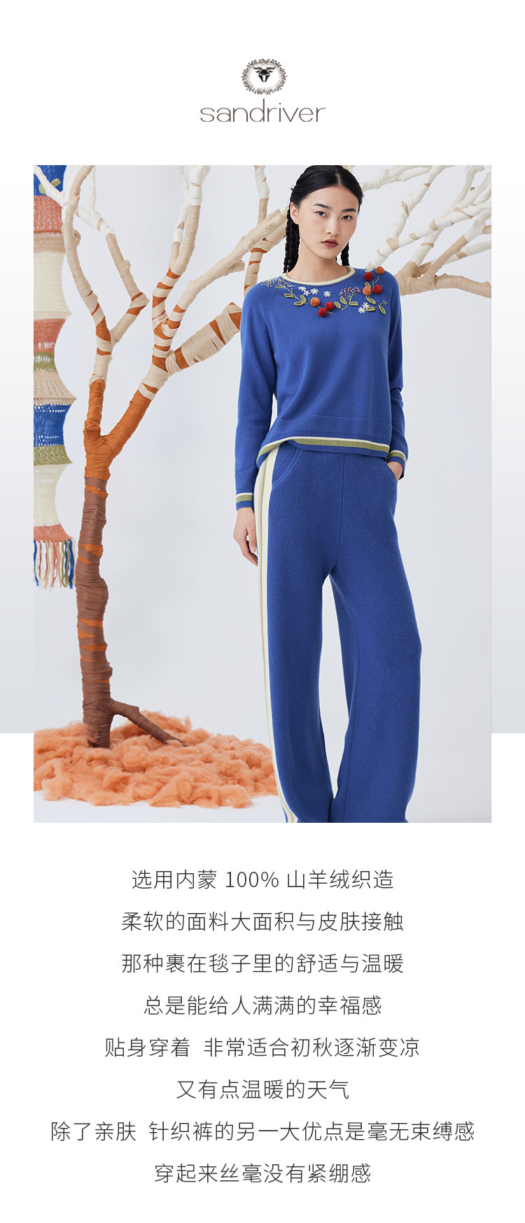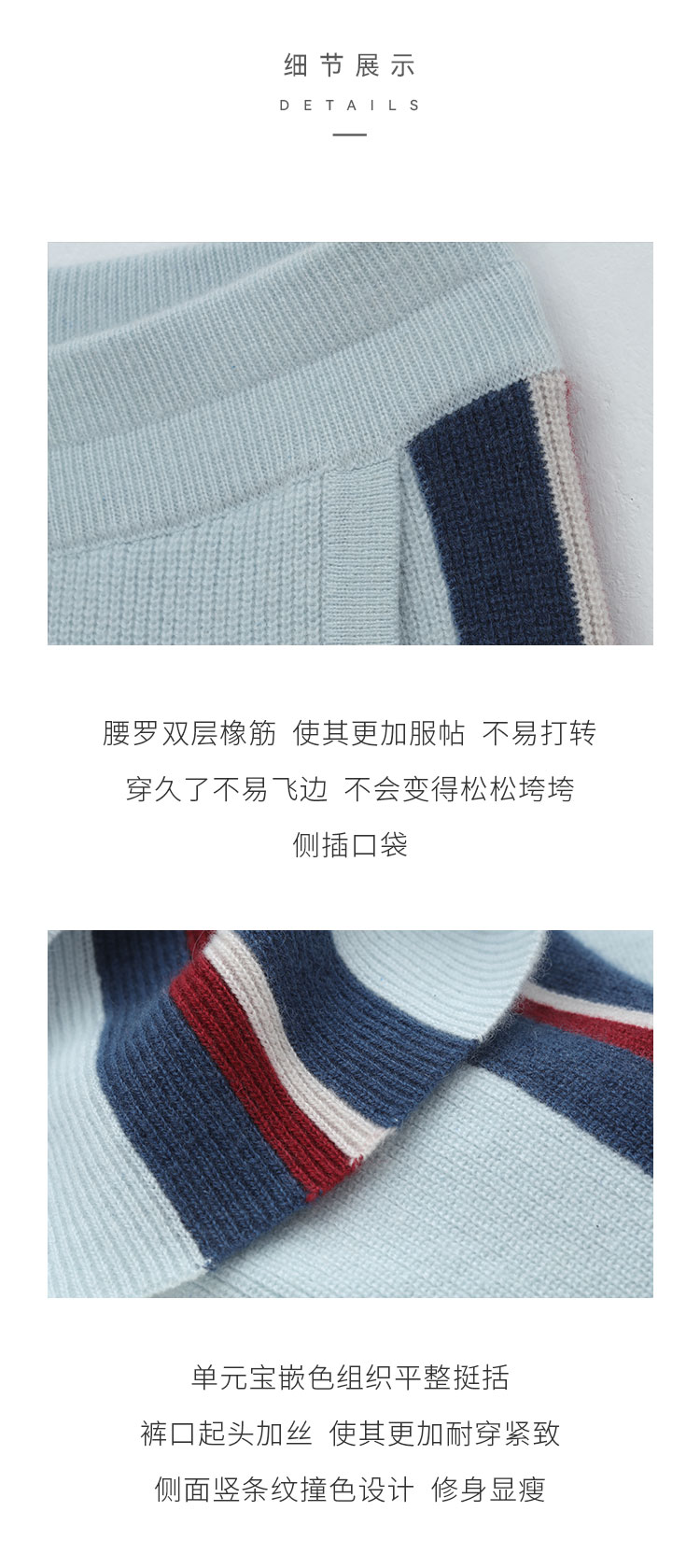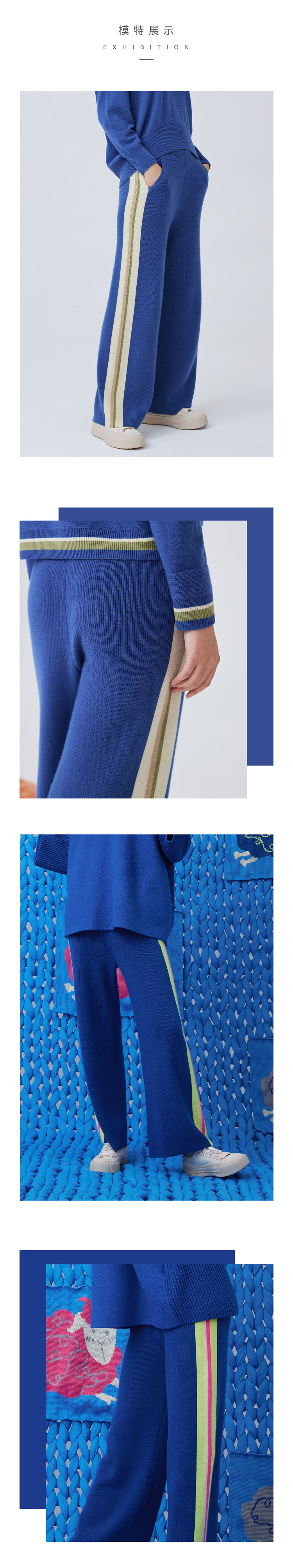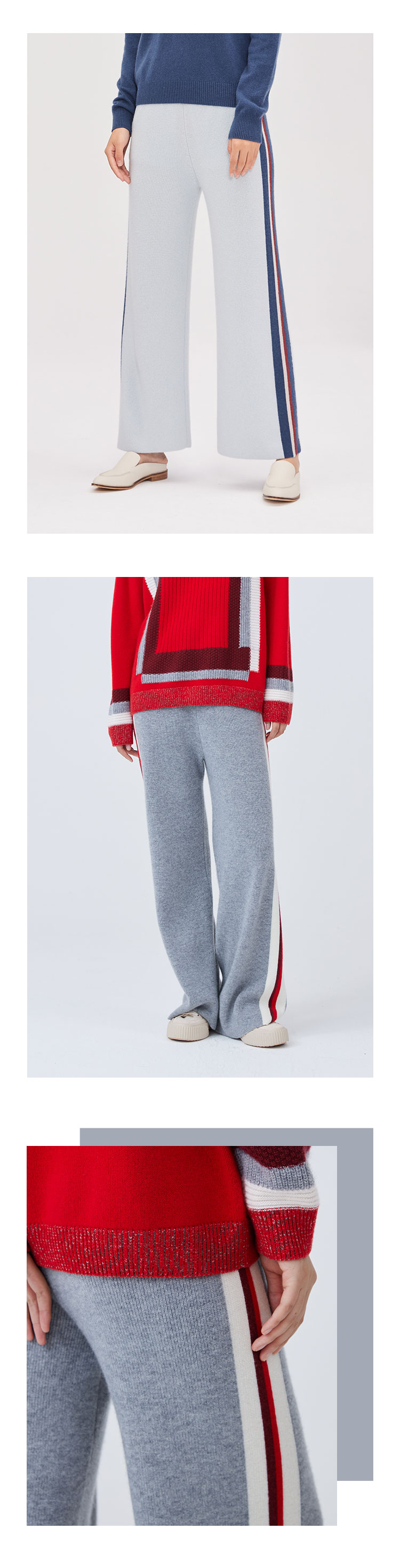 撞色抽条羊绒直筒女裤 SJF93K265N