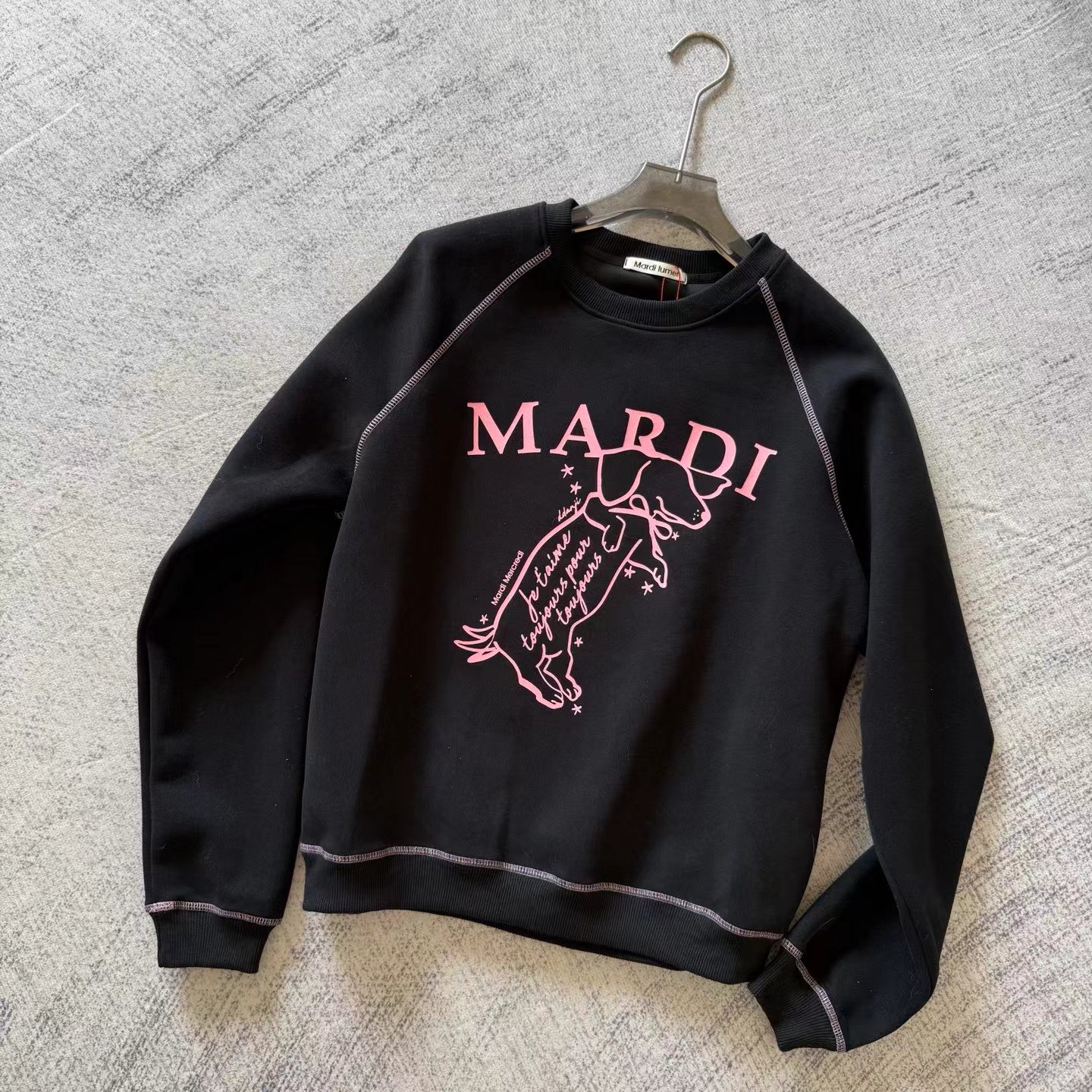 韩国25早秋新款金高银同款腊肠摇尾狗卫衣全身拼麻丝!!整体采用毛圈面料不易闷热双肩外线设计更具活力,新款小狗手绘线描风印花工艺精美精典常规版型穿搭性特强。设计亮点全棉毛圈面料亲肤透气小狗印花提现工艺精美短款收腰设计,显高显瘦,特殊撞色线迹凸显轻运动感!!