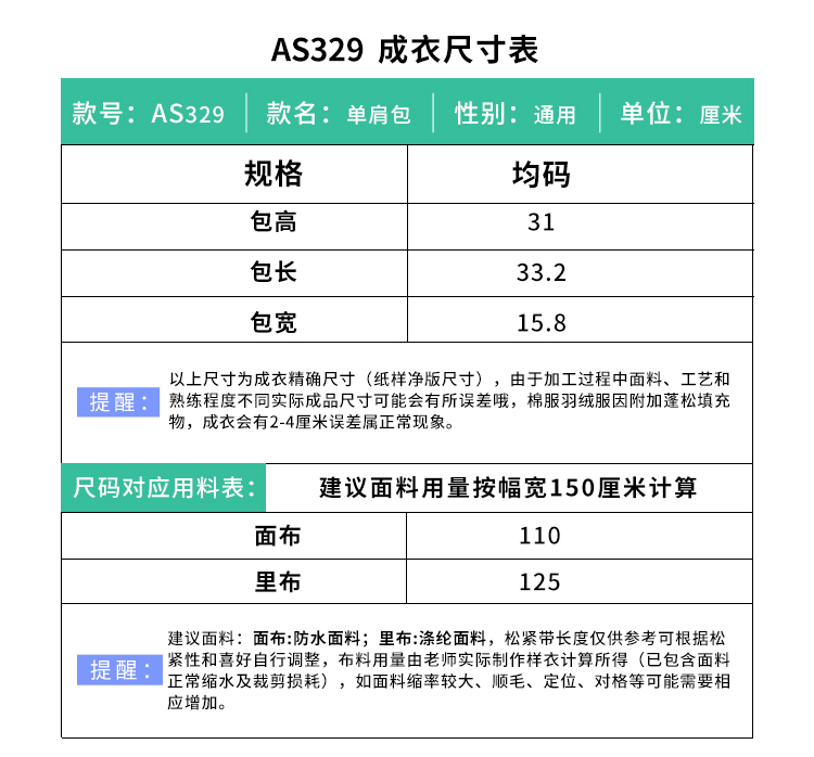 裁缝学苑AS329单肩大容量包包纸样通勤学生旅行电脑包样板裁剪
