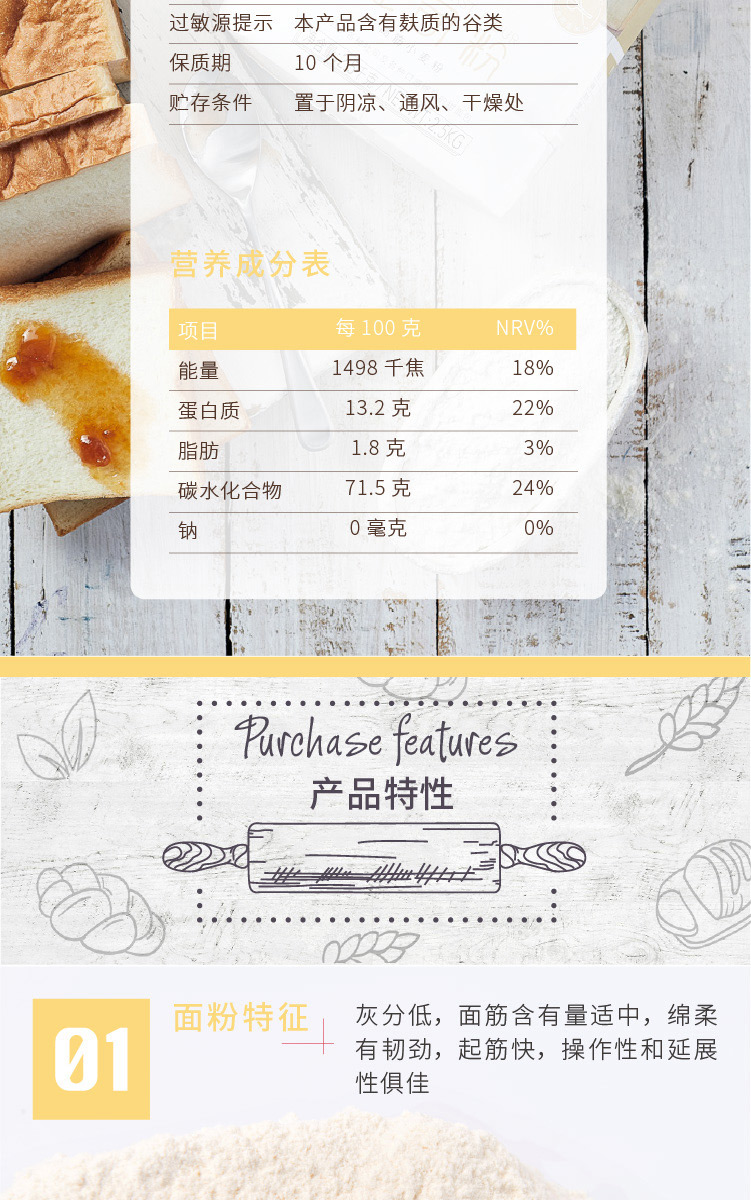 私房专用/1箱10包*1kg/王后牌T55传统法式面包粉