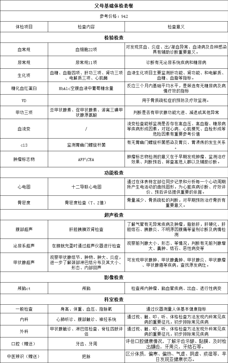 【燕达甜城医院】父母基础体检套餐