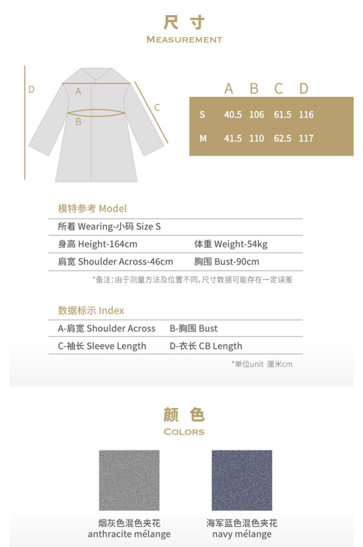 Puree|#0919 羊绒羊毛混纺单排扣简约longline大衣 [灰 / 蓝]
