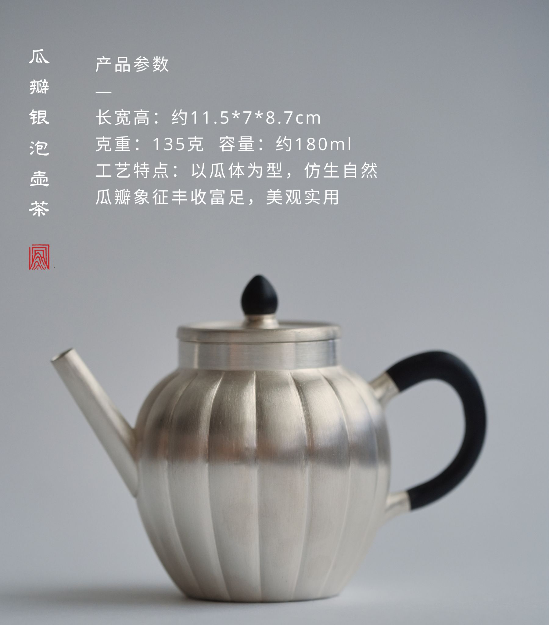 守艺 · 瓜瓣泡茶壶素银款 长宽高约为11.5*7*8.7 克重约 135 克 180 毫升