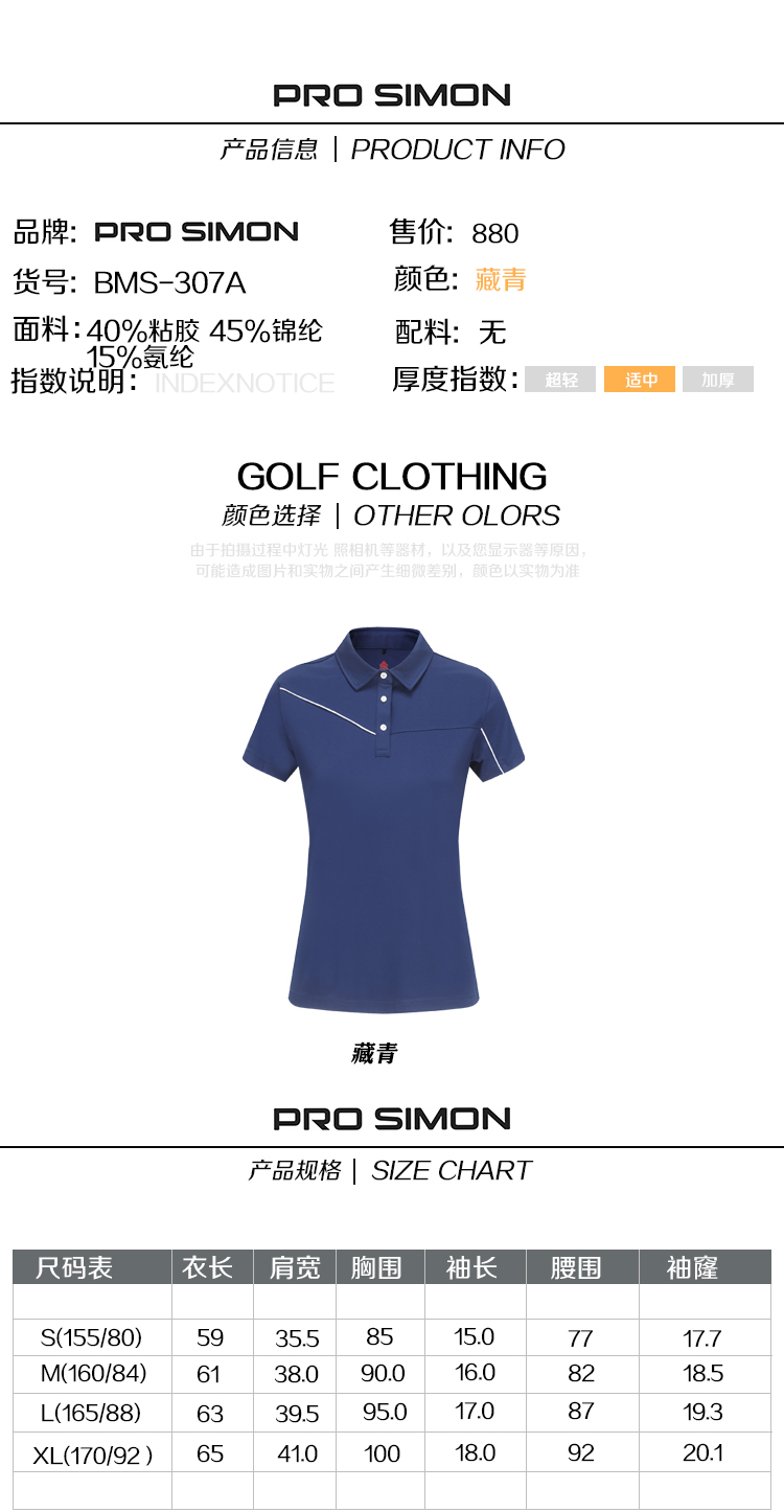 BMS-307A(PROSIMON高尔夫春夏女款弹力运动翻领POLO衫)