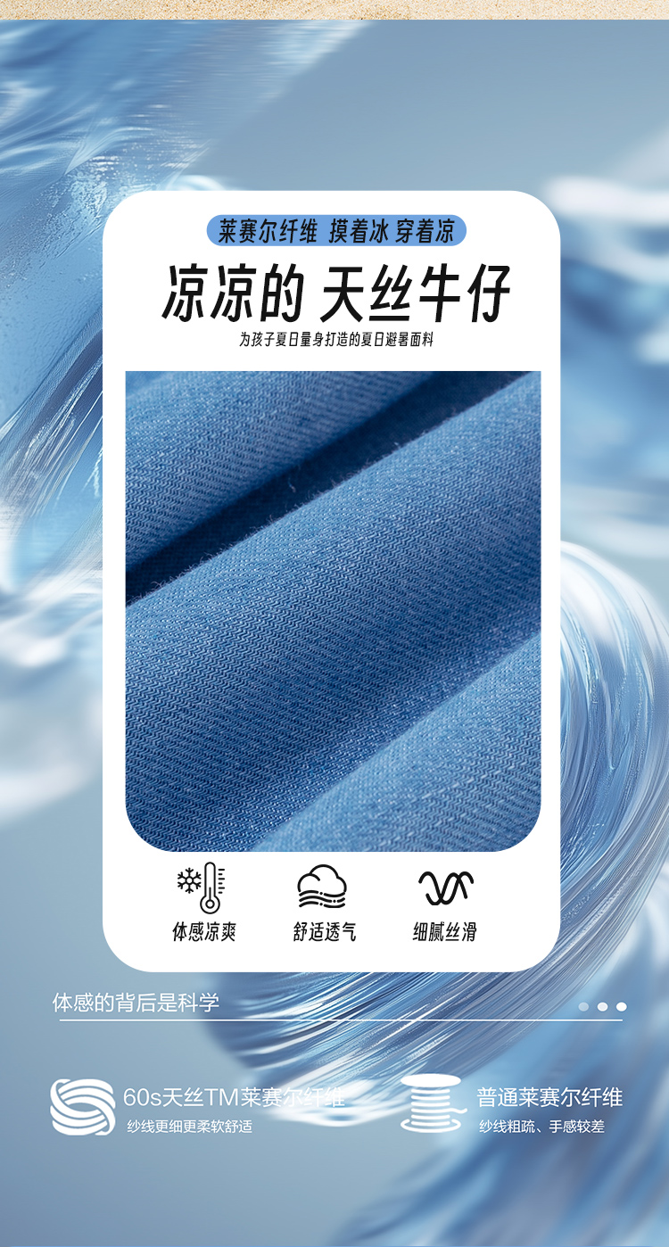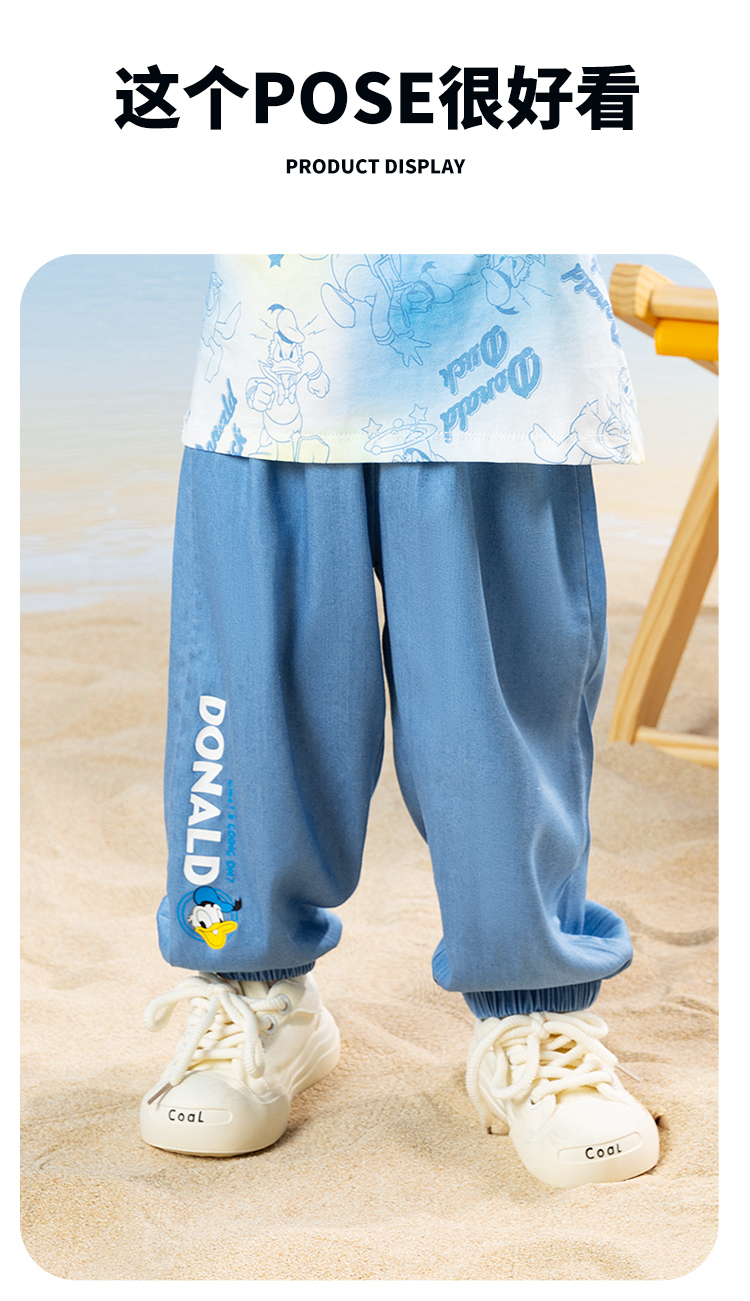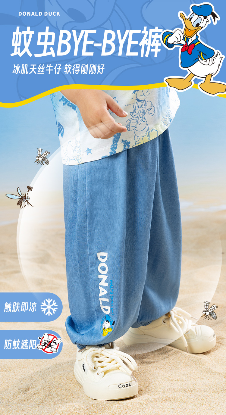 迪士尼2025春夏新款男童天丝软牛仔裤轻薄透气莱赛尔防蚊裤休闲长裤ZD2EK012