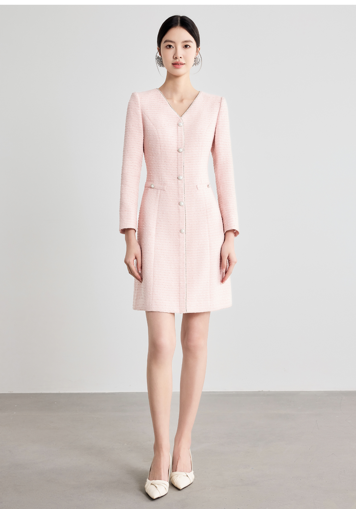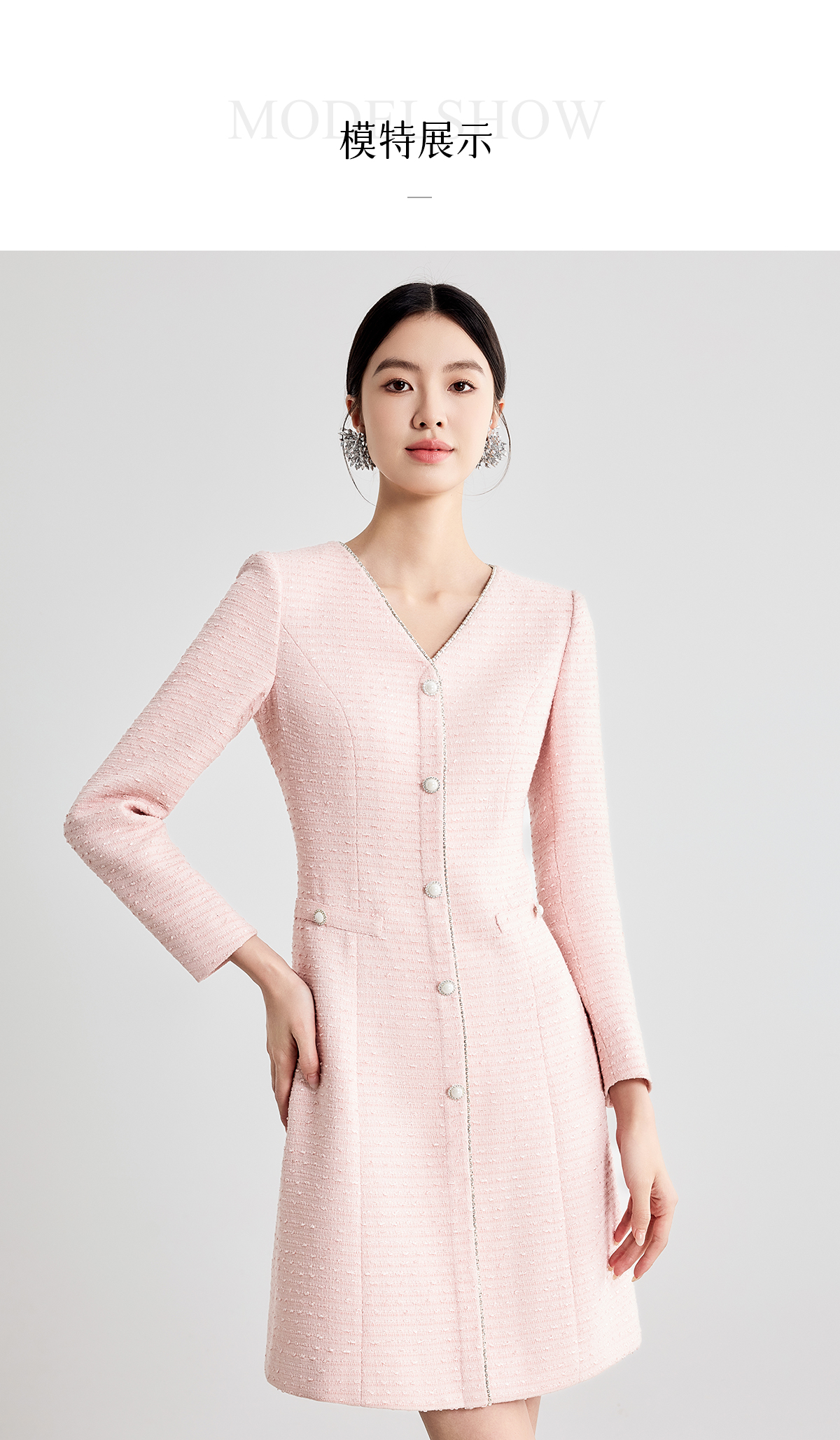 艾尚臣高级感粉色连衣裙女2025早春新款气质法式名媛中长裙工作服