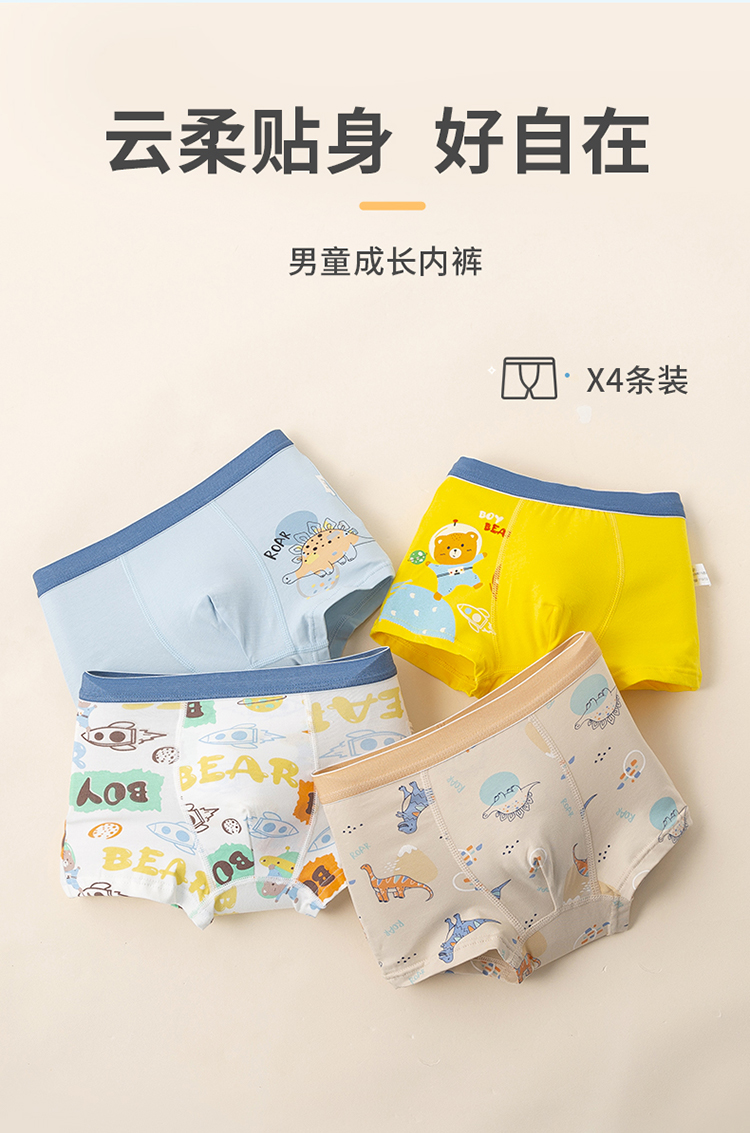 贝贝怡儿童内裤男女童平角四角短裤中小童宝宝内裤4件装