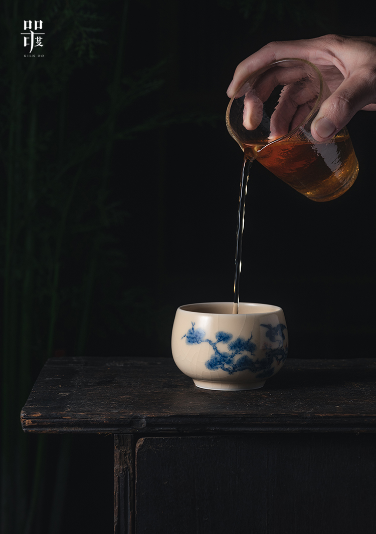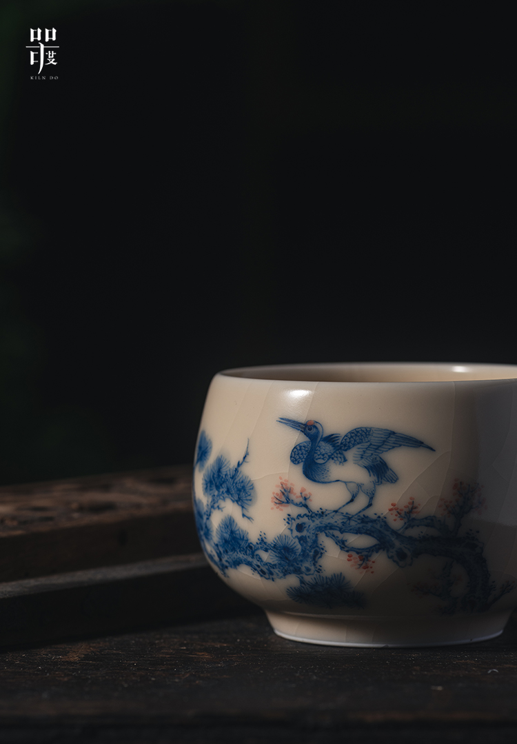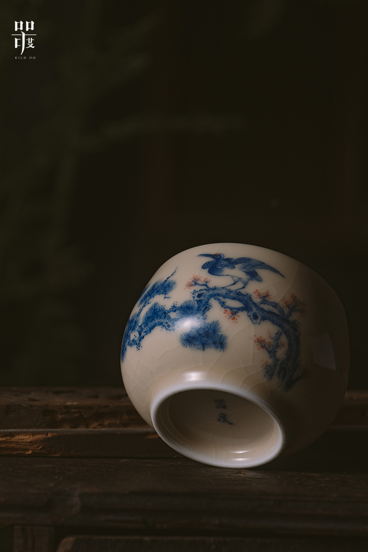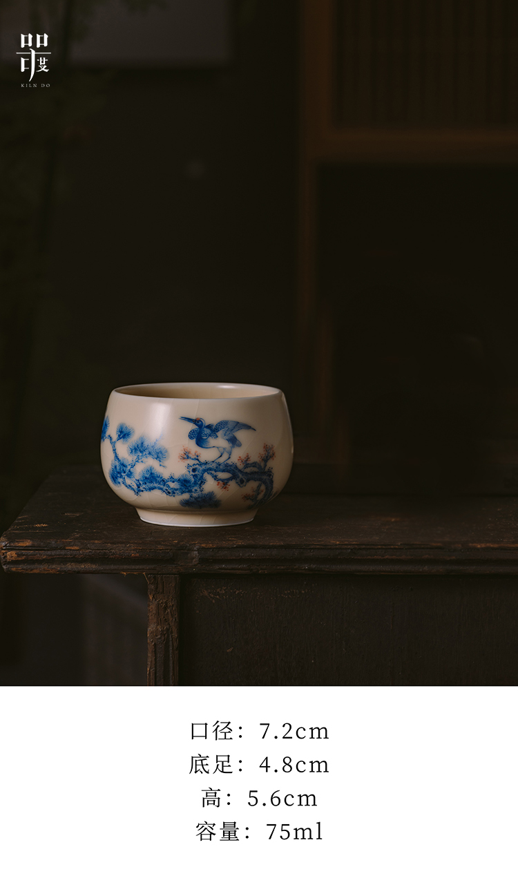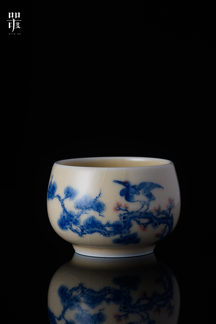 问鼎器度汝窑鹅黄青花容华杯(松鹤延年)