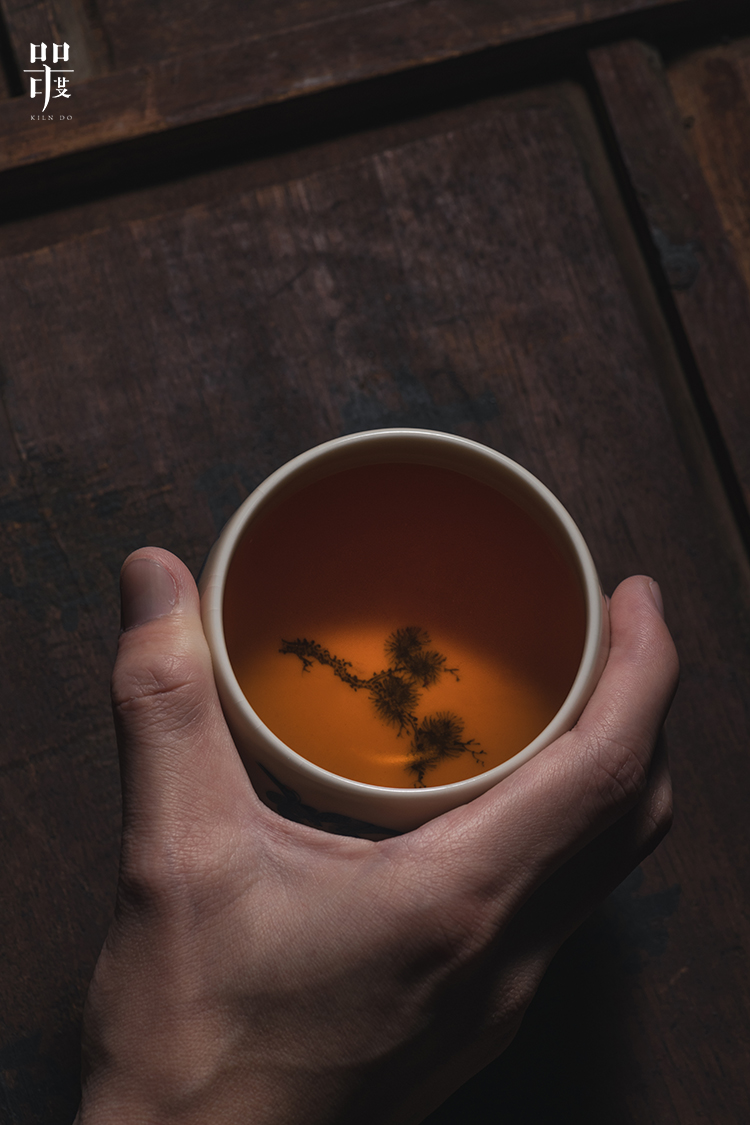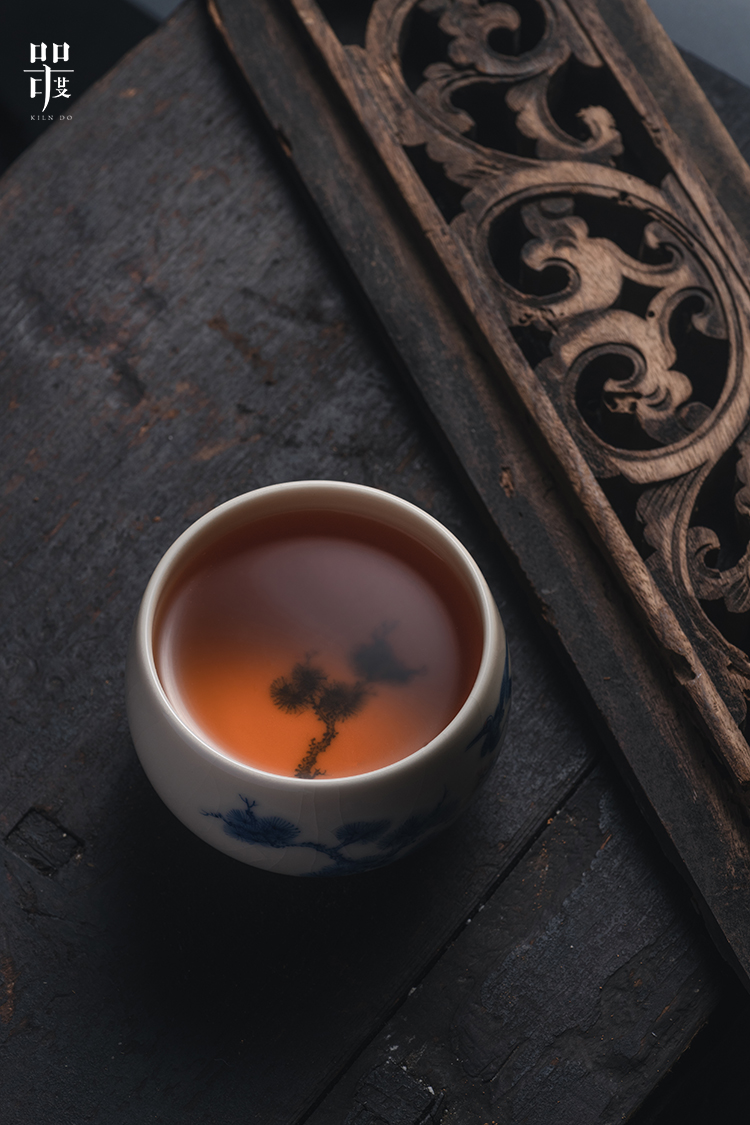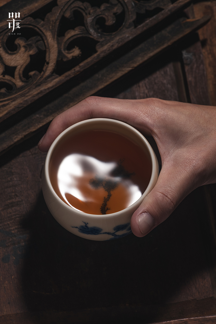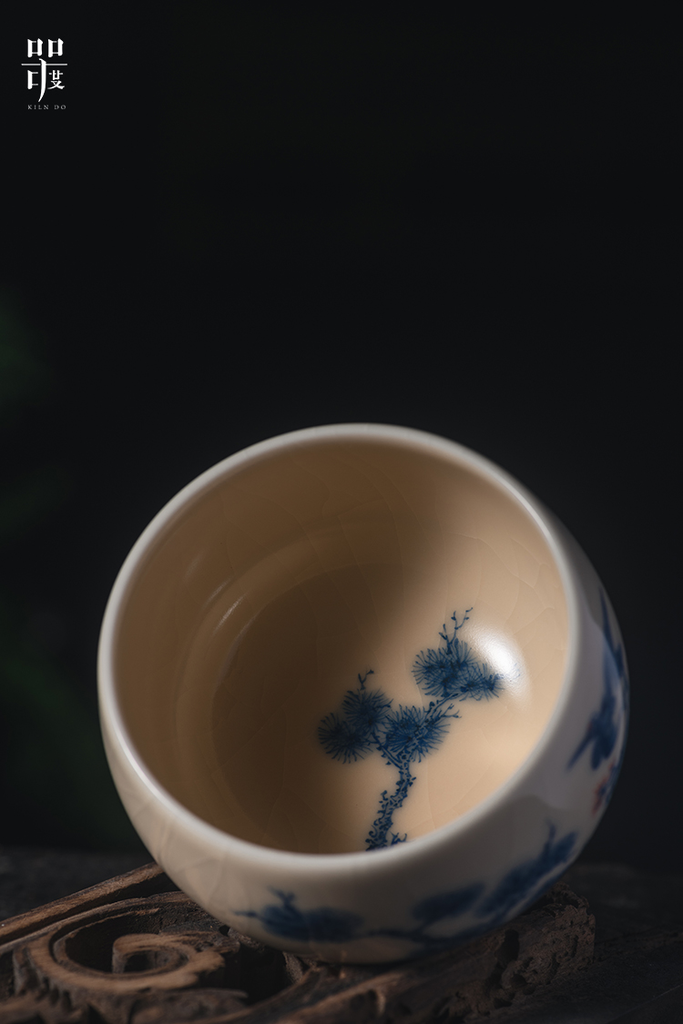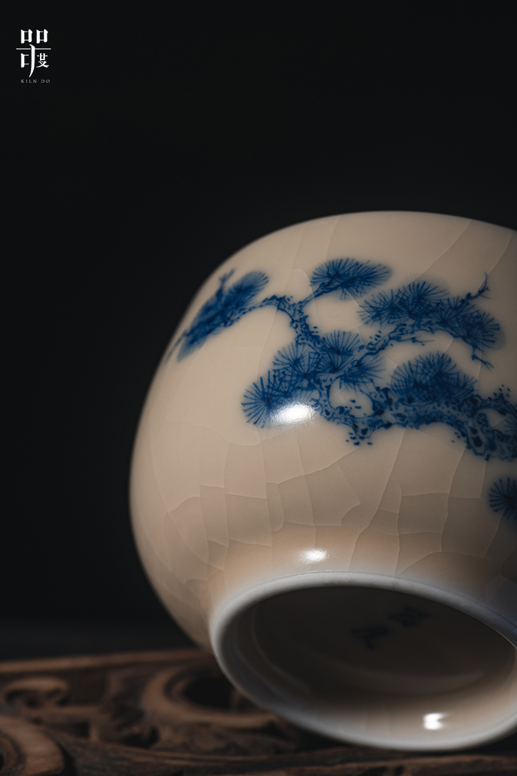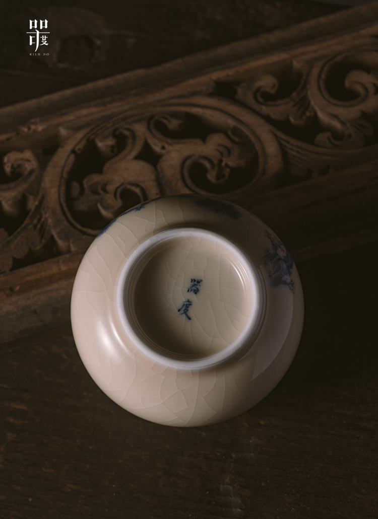 问鼎器度汝窑鹅黄青花容华杯(松鹤延年)