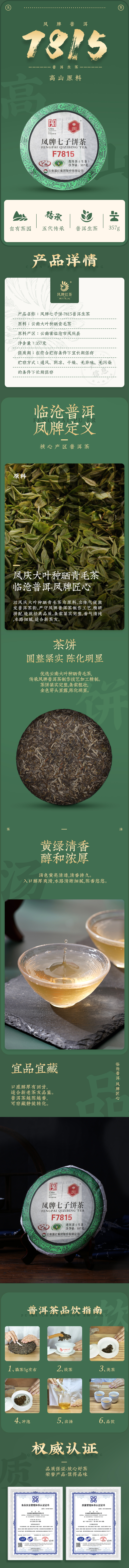 凤牌茶叶云南普洱茶叶生茶饼七子饼茶F7815普洱茶357g