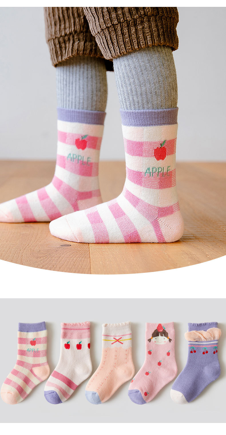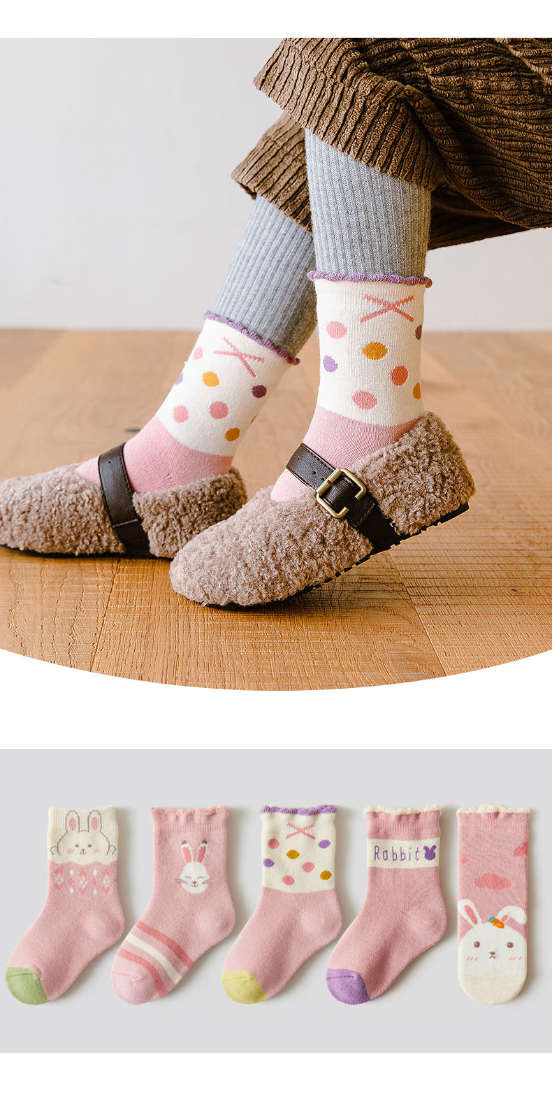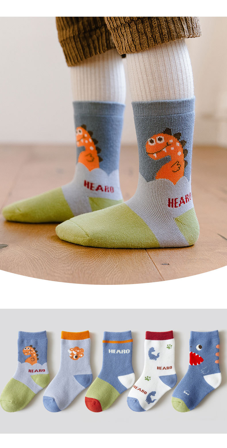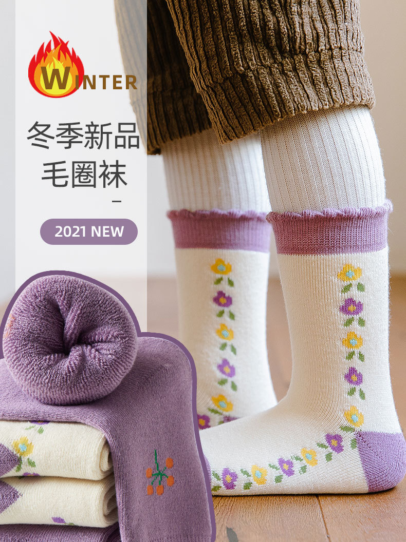 【5双装 毛圈内里 蓄热保暖】儿童袜子冬季加厚棉袜森系中筒袜宝宝袜子卡通男女童加绒袜