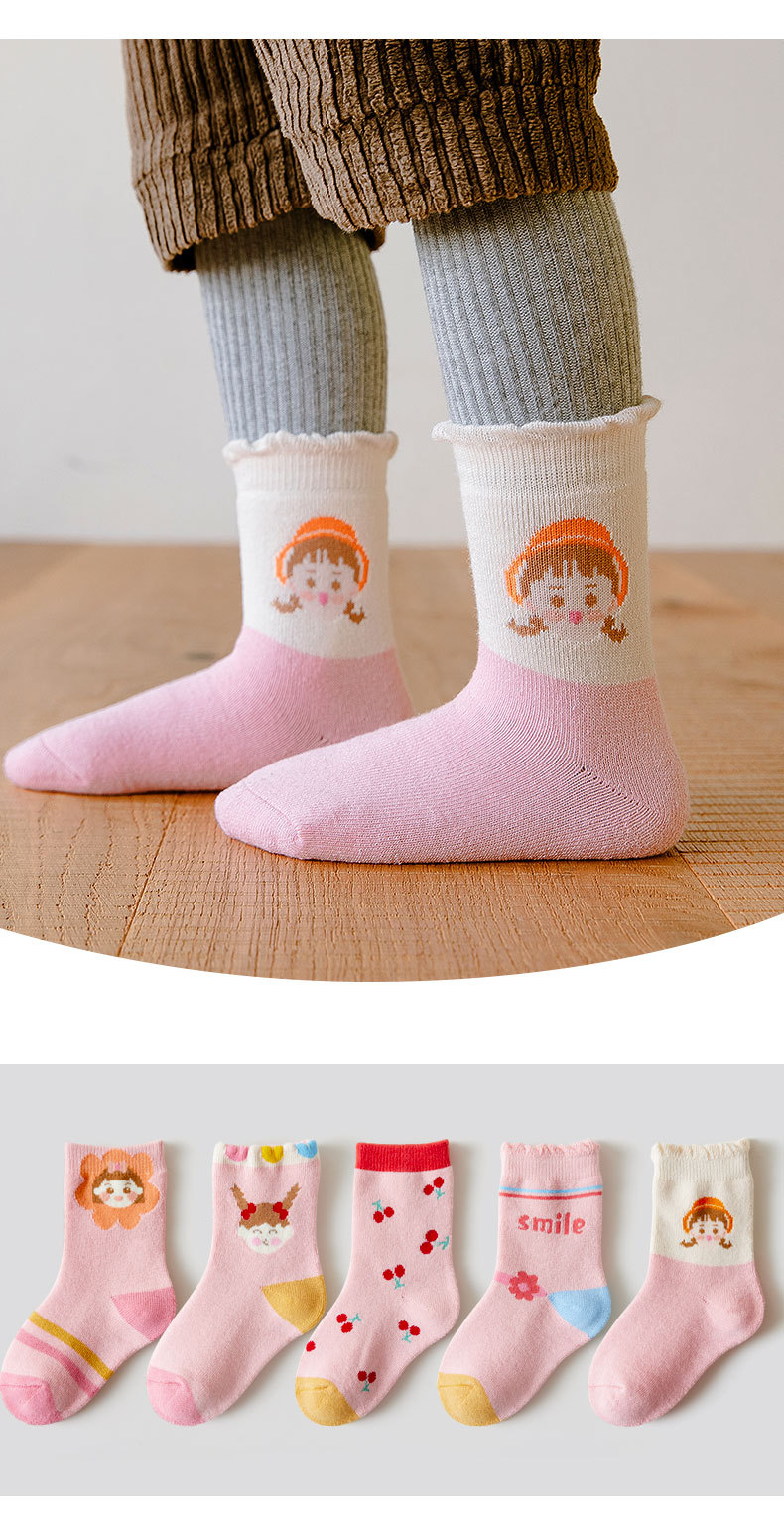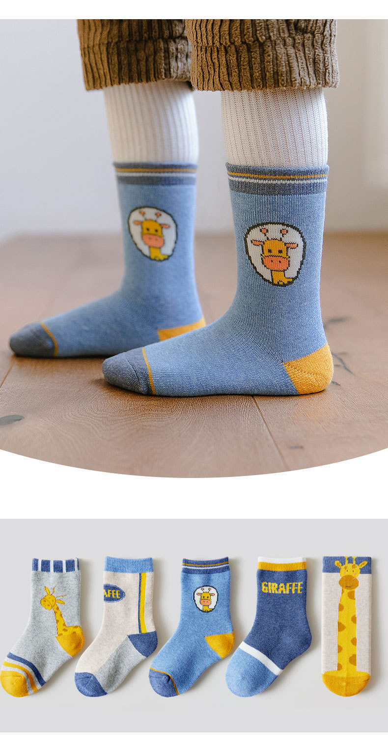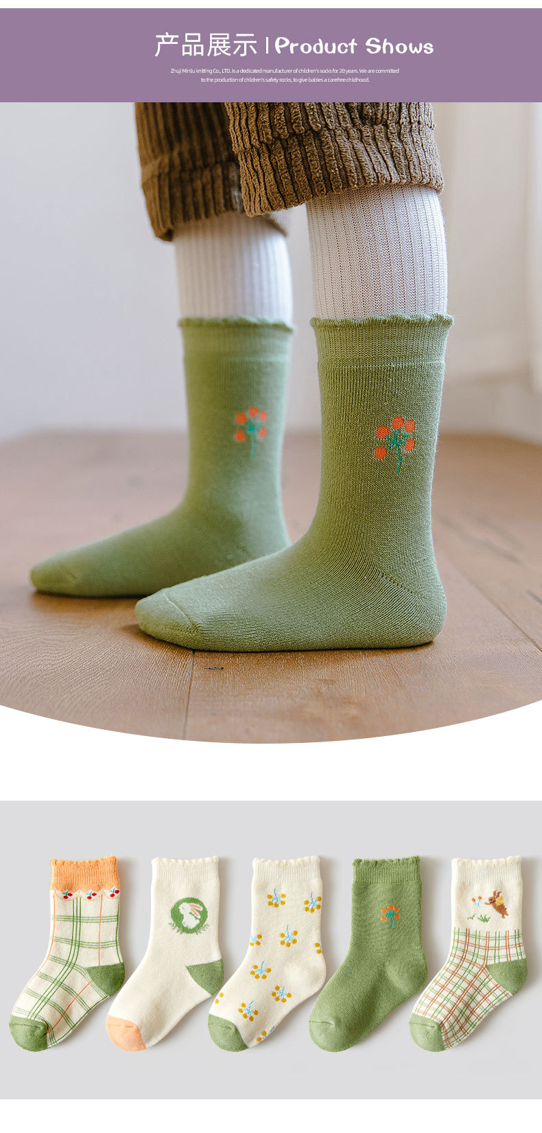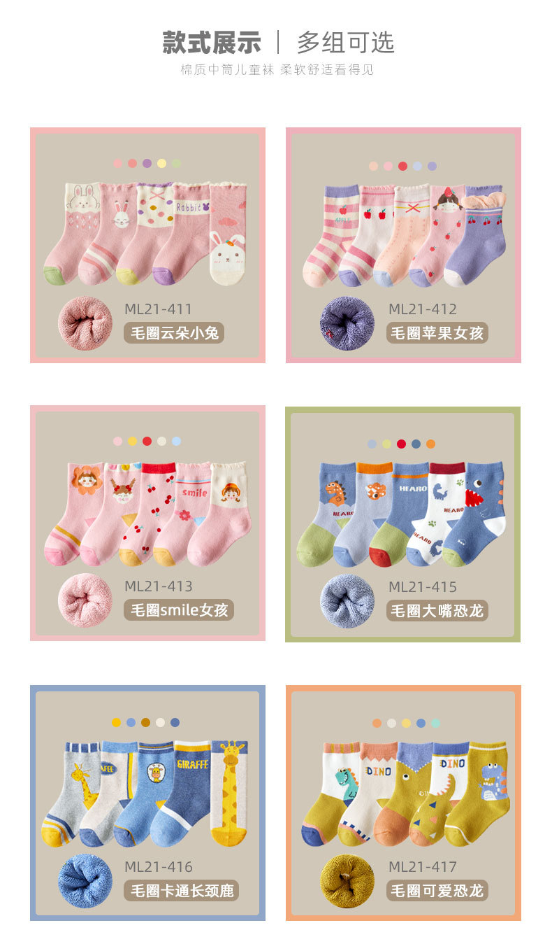 【5双装 毛圈内里 蓄热保暖】儿童袜子冬季加厚棉袜森系中筒袜宝宝袜子卡通男女童加绒袜