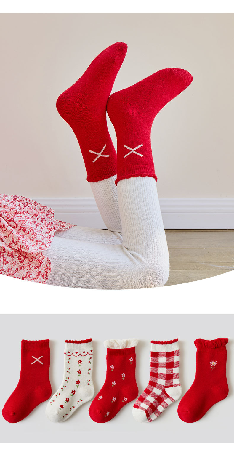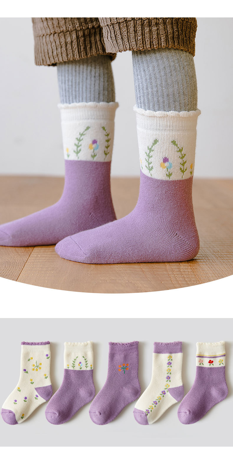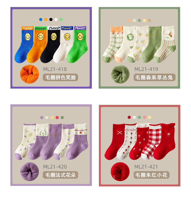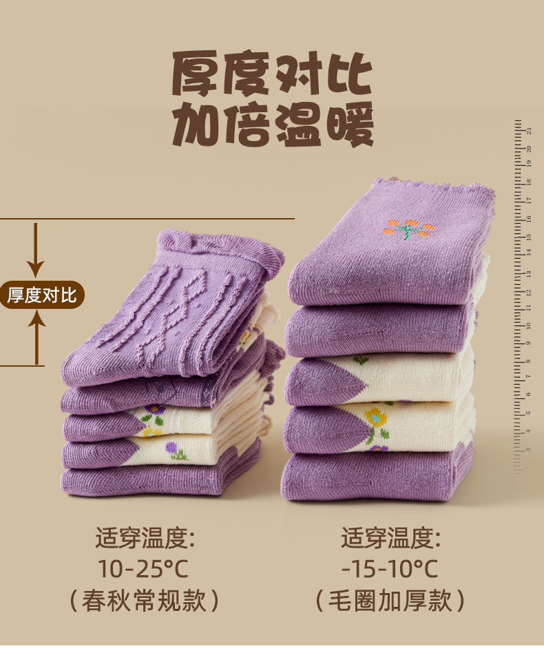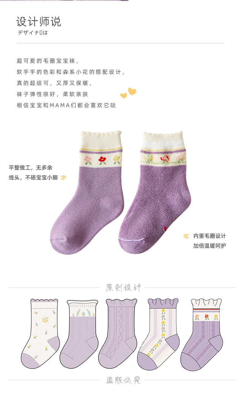 【5双装 毛圈内里 蓄热保暖】儿童袜子冬季加厚棉袜森系中筒袜宝宝袜子卡通男女童加绒袜