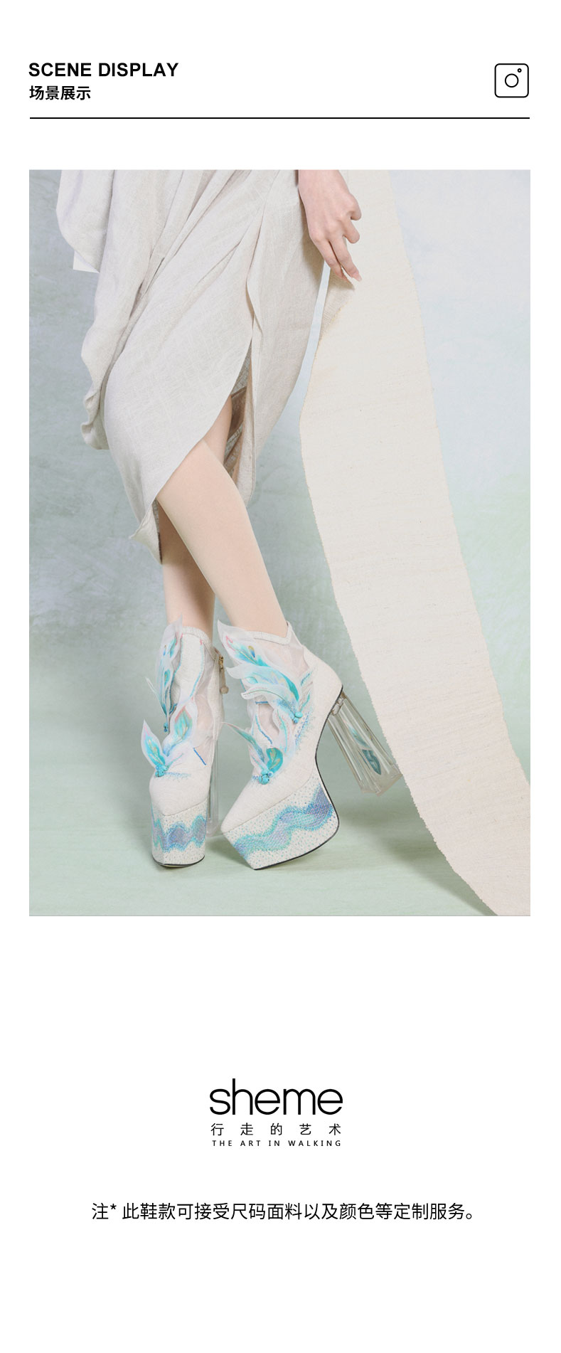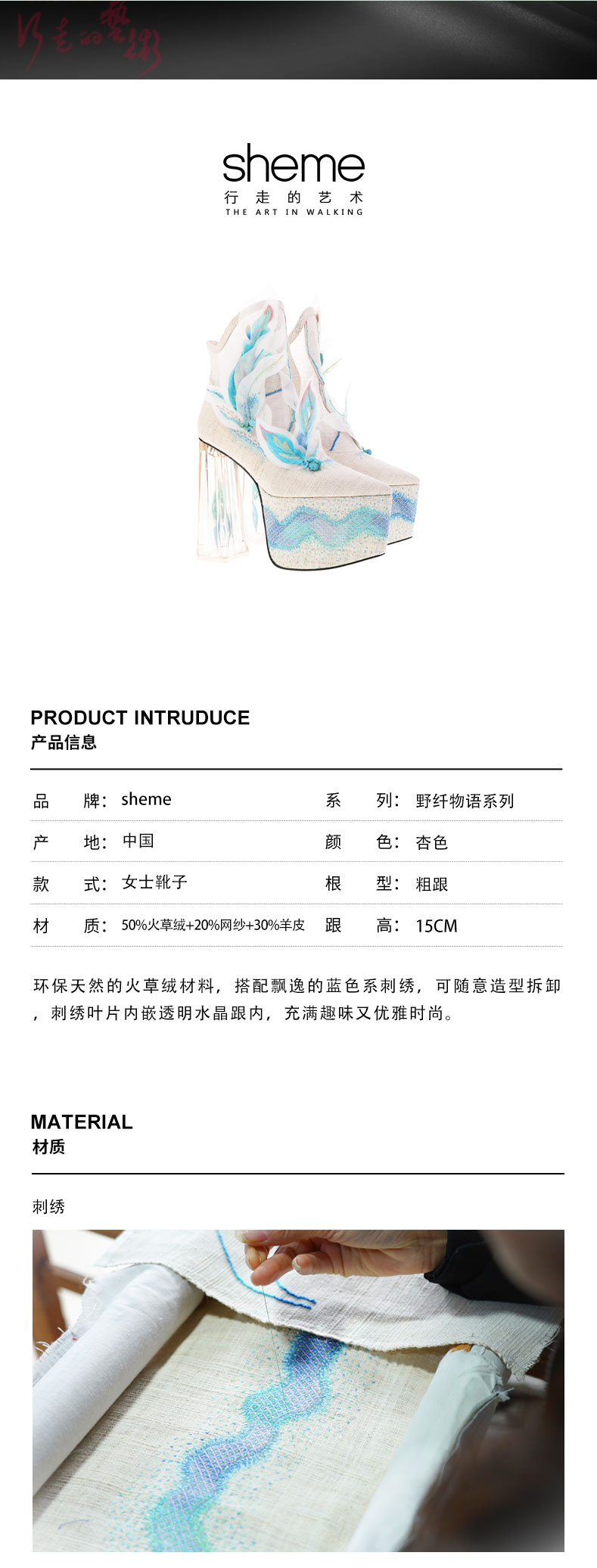 sheme野纤物语系列全球限量版天然火草绒可拆卸叶片时尚女士短靴可定制