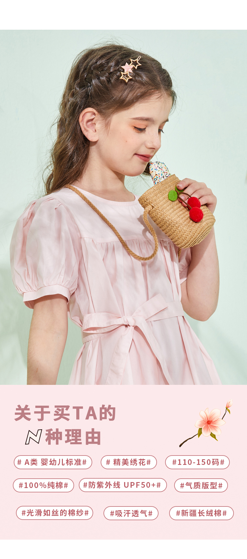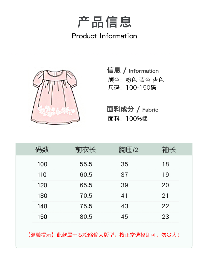 【特价清仓】龙之涵 新款女童灯笼袖绣花连衣裙 婴幼儿A类标准 防晒放紫外UPF50+