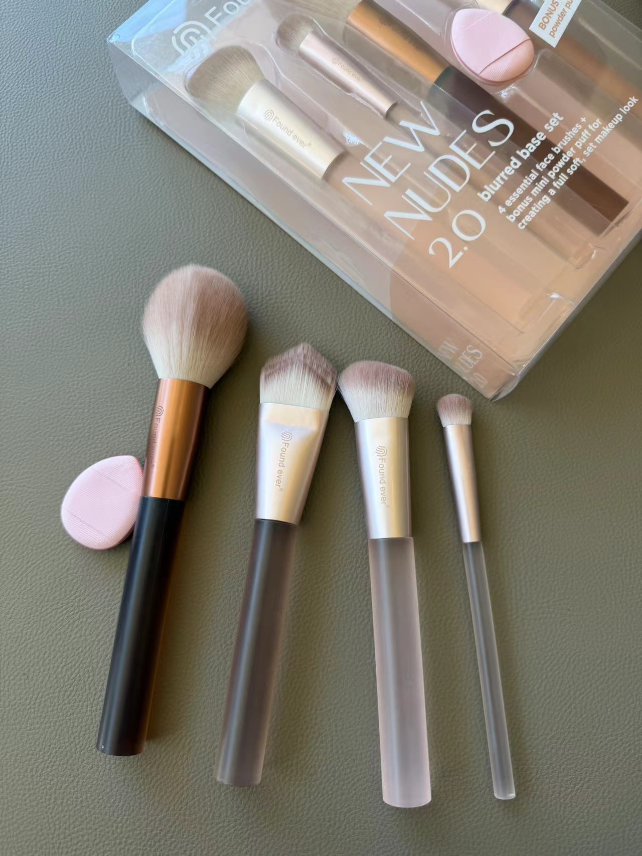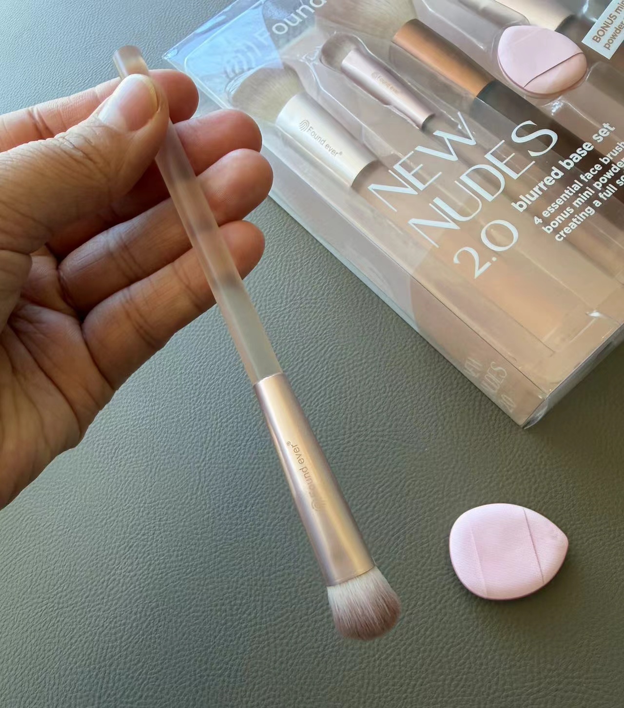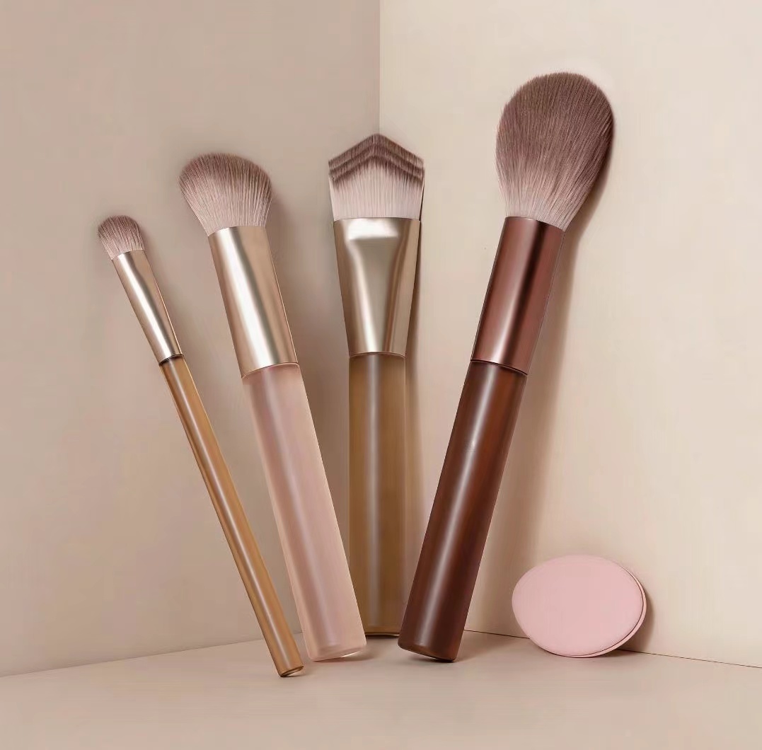 多刷头设计?:4支刷子刷头大小不一,可能对应不同功能,如腮红刷、散粉刷、修容刷等,满足脸部彩妆基础需求。