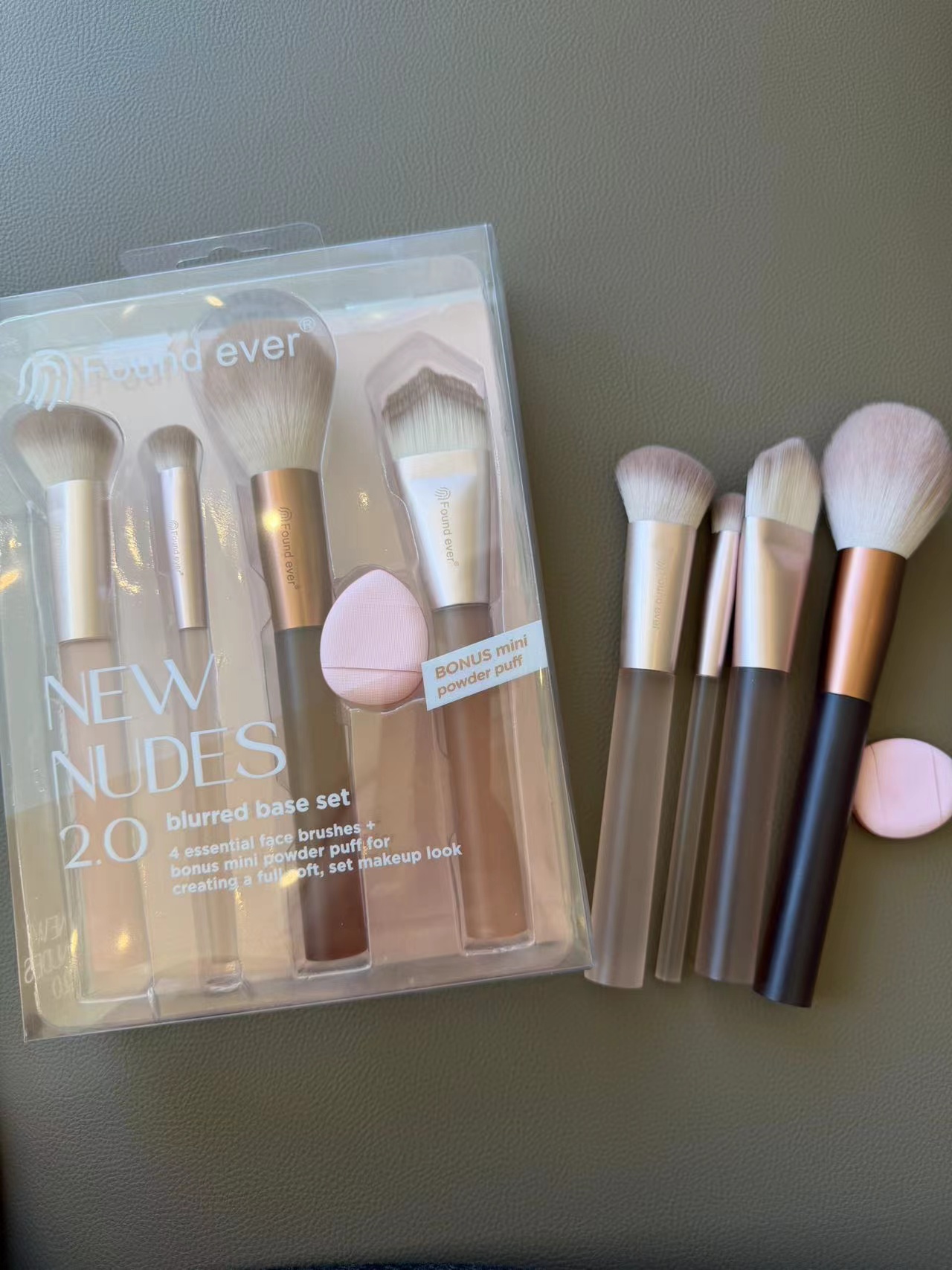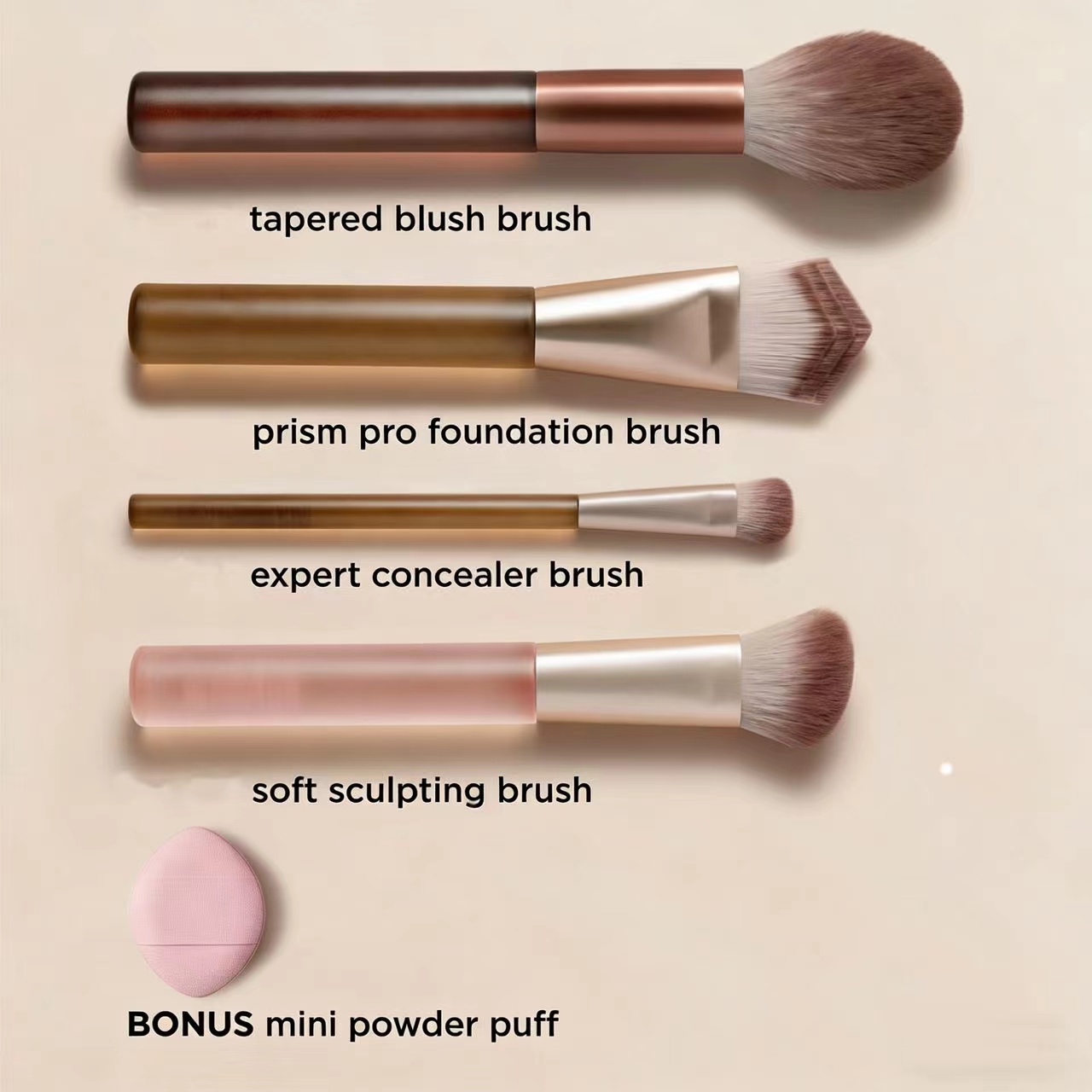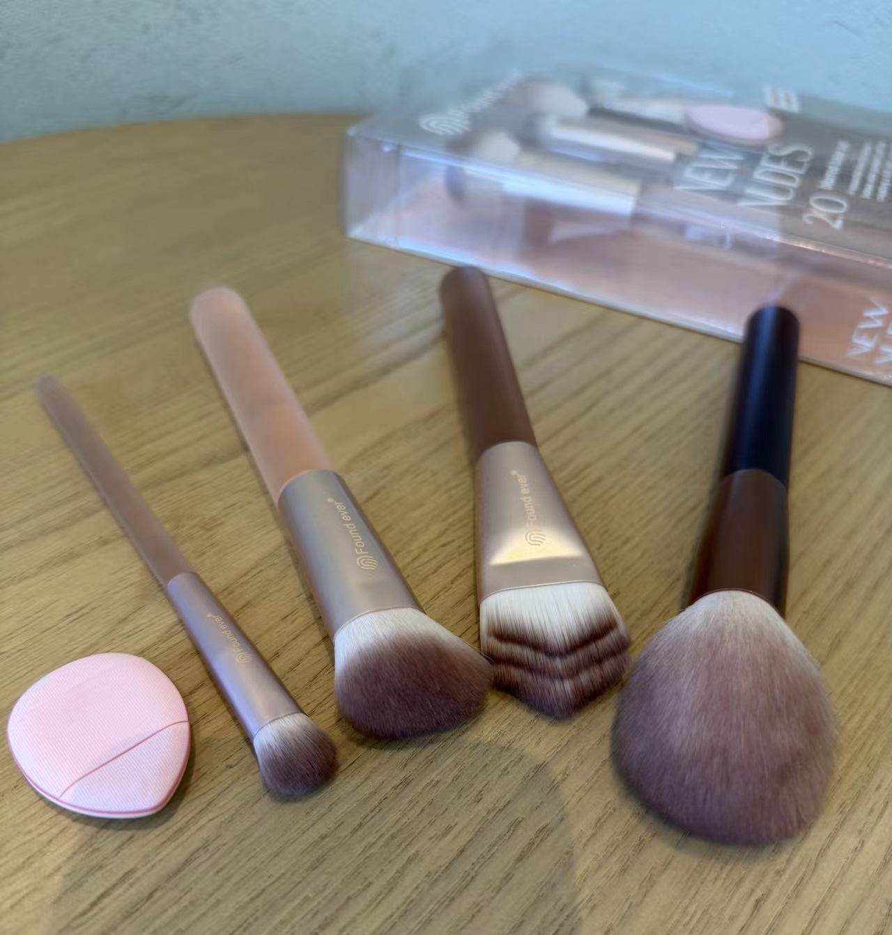 多刷头设计?:4支刷子刷头大小不一,可能对应不同功能,如腮红刷、散粉刷、修容刷等,满足脸部彩妆基础需求。
