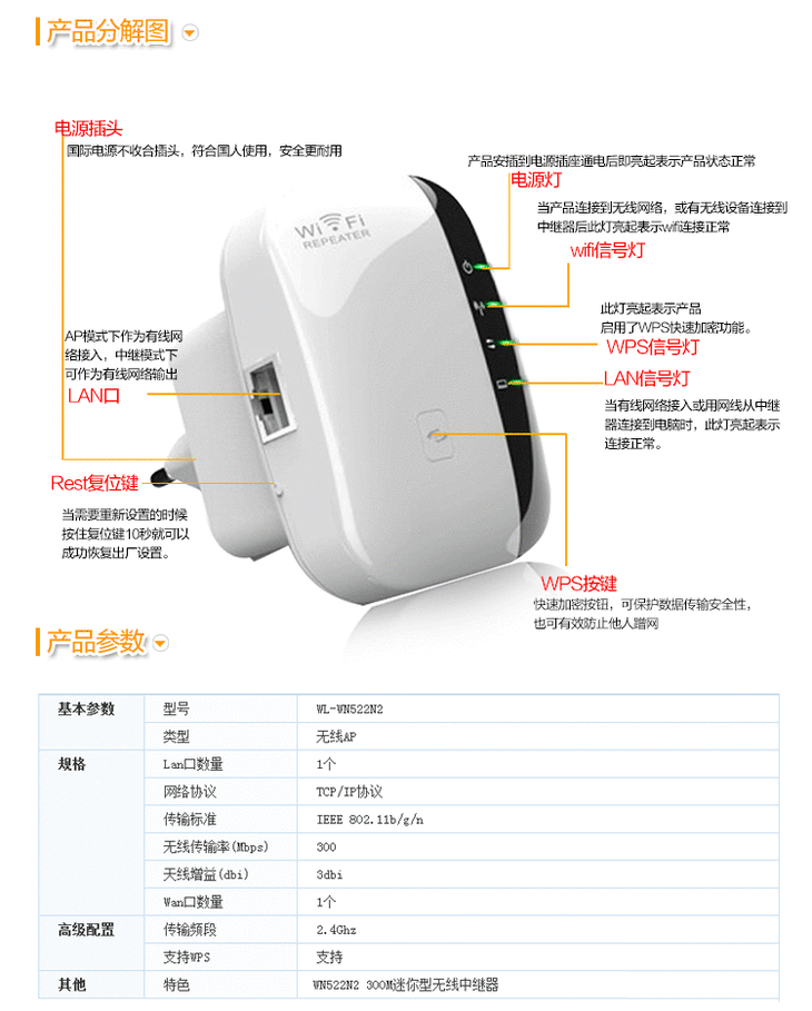 1:将无线中继器插入电源插座。